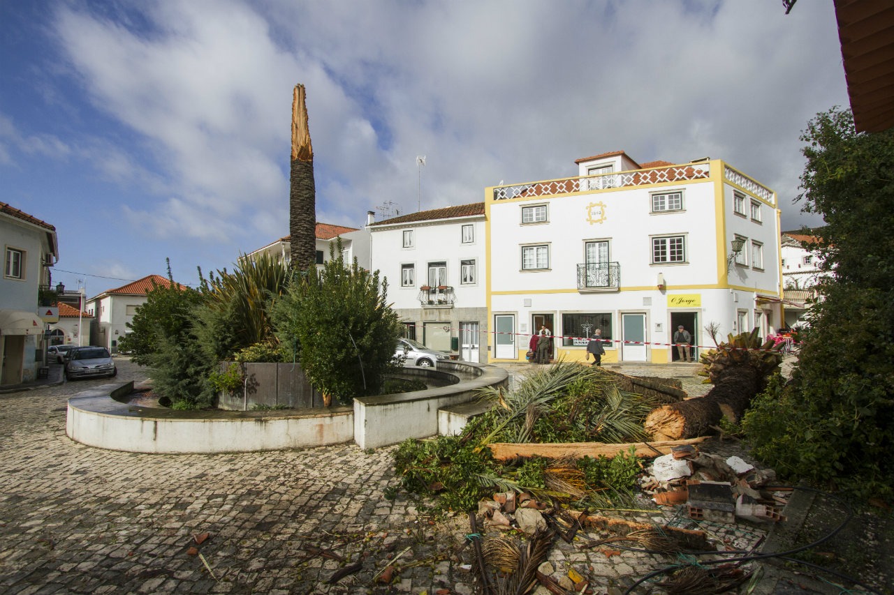 Ventos fortes derrubaram a palmeira que dava nome ao largo central da localidade Foto: Joaquim Dâmaso