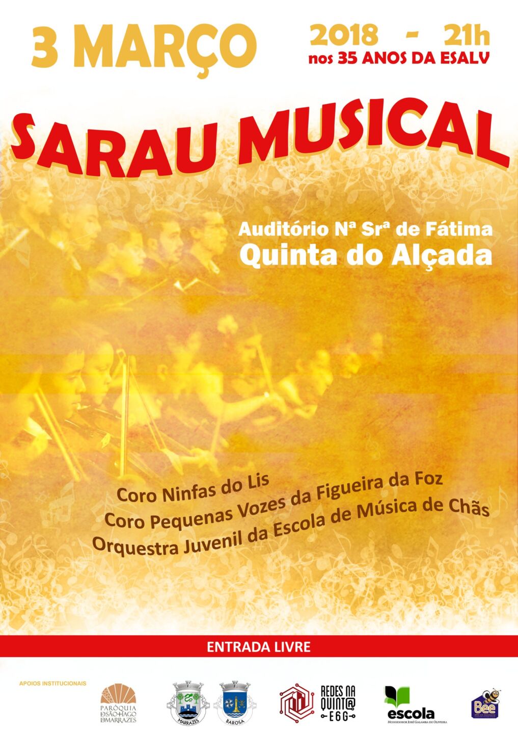 O sarau musical integra as comemorações dos 35 anos da Escola Secundária Afonso Lopes Vieira (ESALV) e tem como objetivo “fortalecer os laços de cooperação com a comunidade envolvente da escola, numa parceria já longa de promoção dos valores culturais e sociais dos jovens”, refere a direção da ESALV em nota enviada às redações. A entrada é livre.