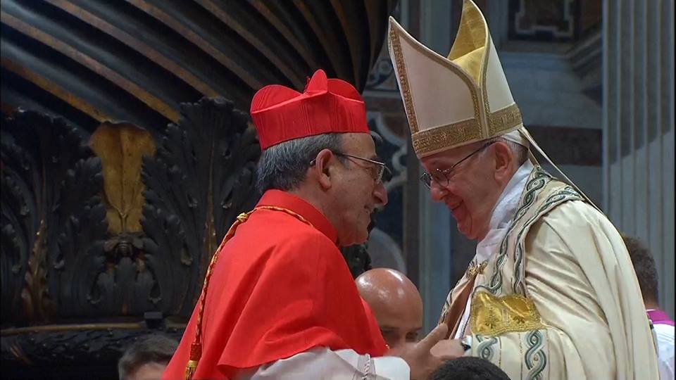 O consistório em que foi elevado a cardeal decorreu esta tarde na Basílica de S. Pedro, em Roma, tendo sido o sétimo cardeal (dos novos 14 cardeais) a receber o anel, o barrete e a bula cardinalícios das mãos do papa Francisco.