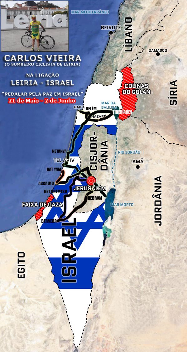 Pode acompanhar o percurso em Israel através da página de Facebook do REGIÃO DE LEIRIA ou do bombeiro ciclista.