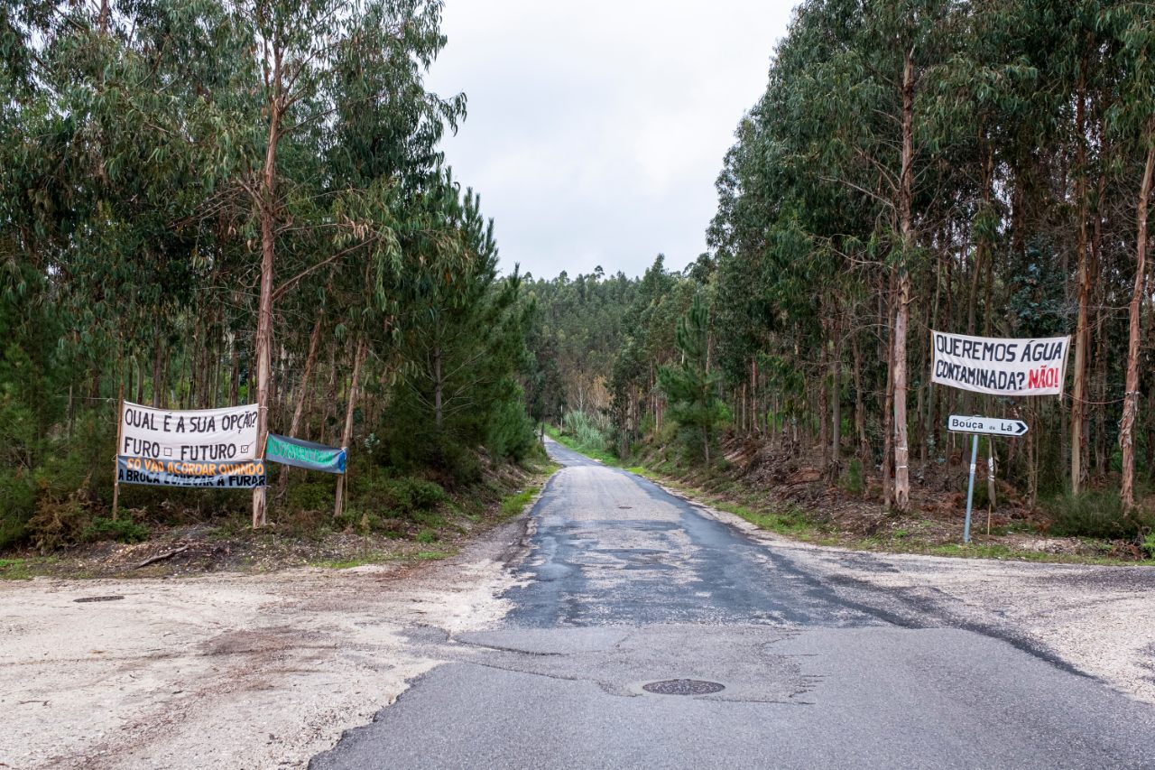 A oposição à exploração de gás na Bajouca está espelhada nos cartazes junto ao local para onde está prevista a perfuração Foto: Joaquim Dâmaso