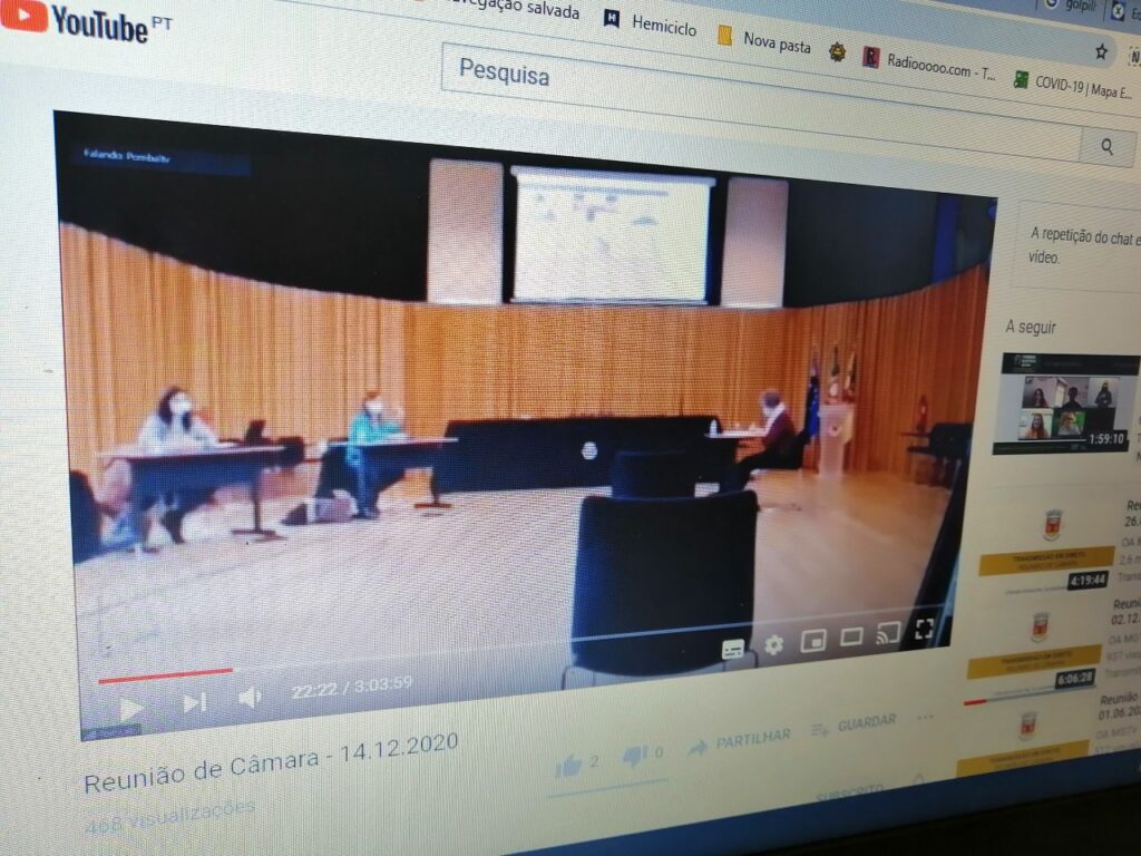 As reuniões de câmara, transmitidas pela internet, têm decorrido à distância por videoconferência. Na última segunda-feira, a reunião foi convocada para as instalações municipais, mas com a possibilidade de opção pela reunião à distância.