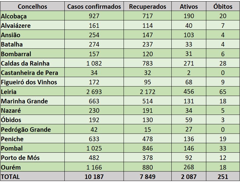 Já Ourém, que pertence ao distrito de Santarém, viu aumentar em 28 o número de novos casos de Covid-19, de acordo com a informação divulgada pela Comunidade Intermunicipal do Médio Tejo.