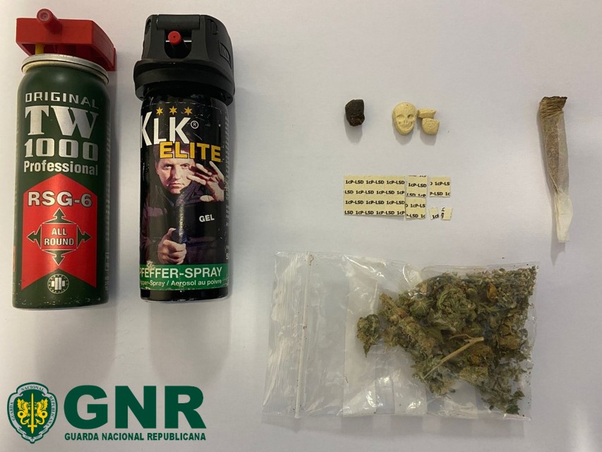 No dia seguinte, domingo, dia 17, a GNR levou a cabo uma ação de fiscalização rodoviária durante a qual constataram que um homem “estava na posse de dois aerossóis de defesa e de produto estupefaciente, nomeadamente duas doses de canábis, 22,5 doses de MDMA e 0,18 gramas de LSD”.