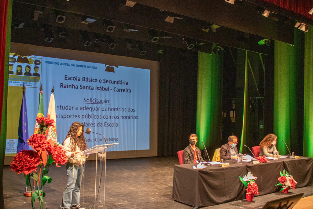 Na assembleia jovem organizada pela Câmara Municipal de Leiria, o debate foi enquadrado pelos temas “Cidadania cultural: cocriar, reativar e programar” e “Paz: Ideias para um manifesto capaz”. No exercício procurou-se desenvolver a criatividade e o espírito crítico, fomentando a discussão de propostas elaboradas a partir do trabalho colaborativo para incentivar o diálogo democrático entre jovens.