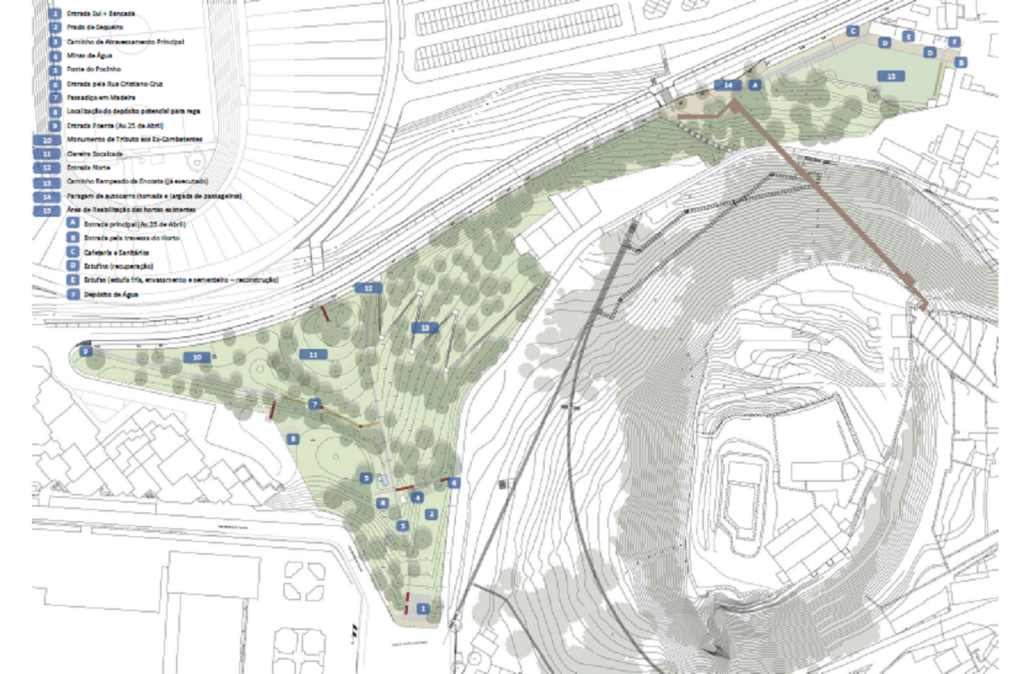 A intervenção – denominada “Extensão do parque verde da encosta do Castelo” – contempla a “adequação da área natural a passeio, estadia e atividade física”, criação de percursos pedonais, reabilitação de escadas e passadiços, da fonte do Pocinho e das edificações municipais adjacentes ao antigo horto, recuperação das estufas e instalação de uma cafetaria e sanitários.