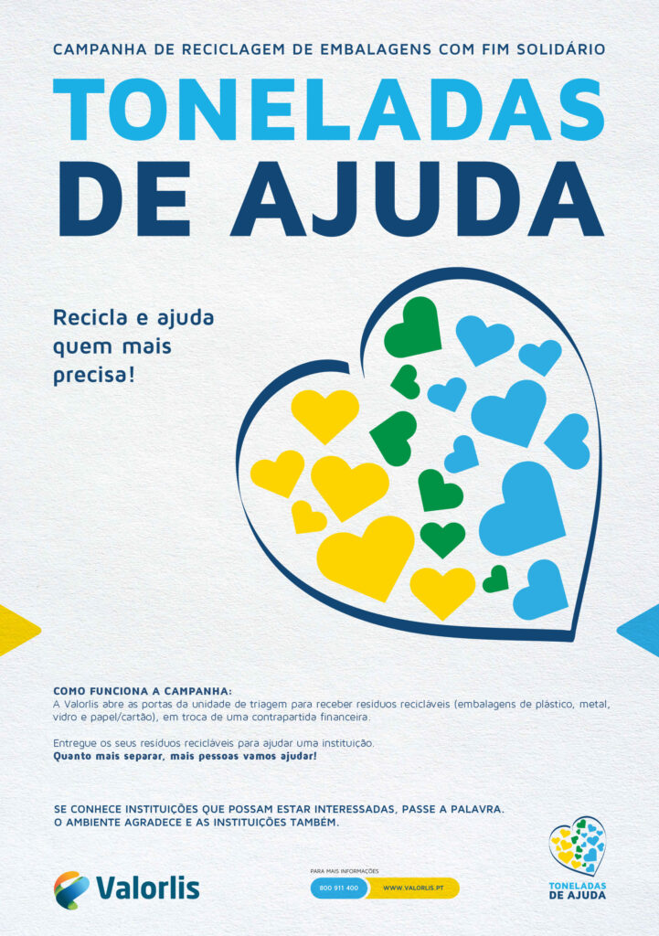 A campanha prevê ainda a entrega de resíduos recicláveis por qualquer pessoa ou entidade, em nome de uma instituição. A única regra passa por escolher um dos organismos inscritos em “Toneladas de Ajuda”. A lista das instituições estará disponível na página de internet da Valorlis após o encerramento das inscrições.