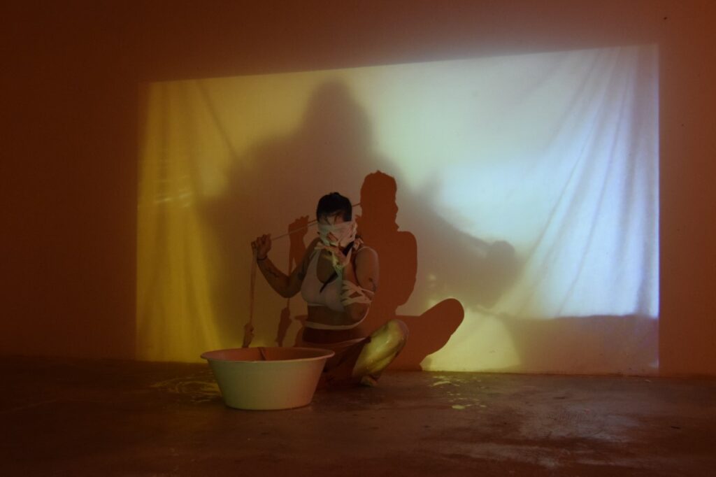 Na performance “Lavadeira”, a artista repete os “gestos contínuos e desgastantes” que acompanhavam a tarefa, mas também as cantigas, porque “roupa que não é cantada não é lavada”.