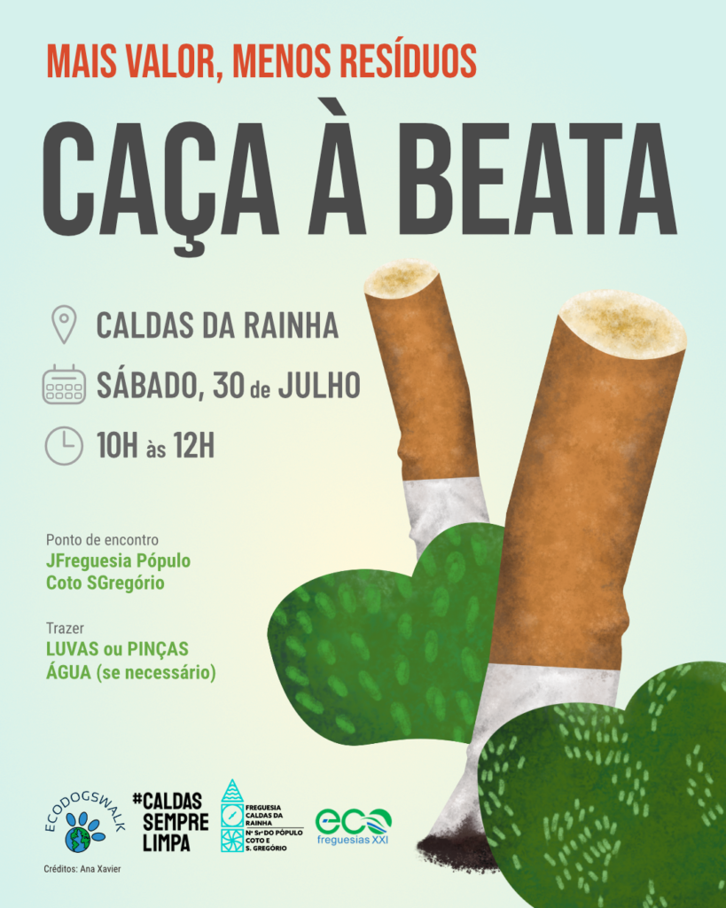 A “Caça à Beata” é uma ação cívica de recolha de pontas de cigarro e “tem como objectivo chamar a atenção para o gesto de deitar a beata para o chão, adquirido pela aprendizagem consciente e inconsciente”, explica a Eco.dogs.walk, um movimento informal de cidadãos em prol do ambiente e da aprendizagem ambiental, preocupado com o bem-estar das pessoas e do planeta, em nota de imprensa.
