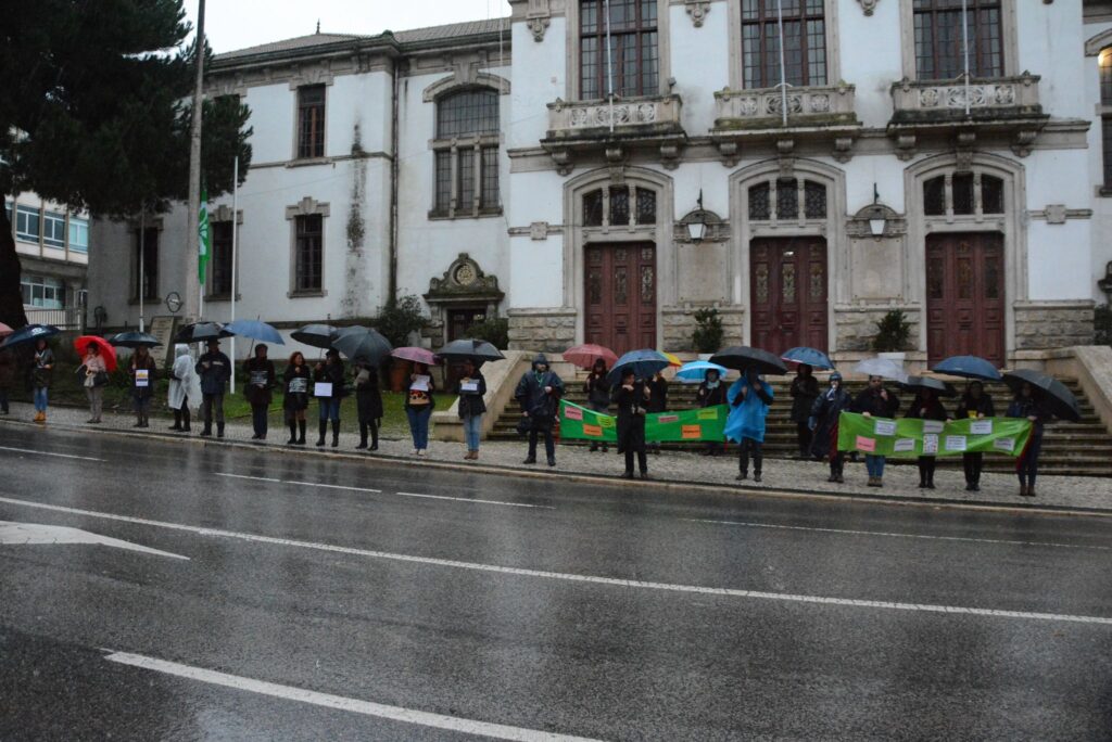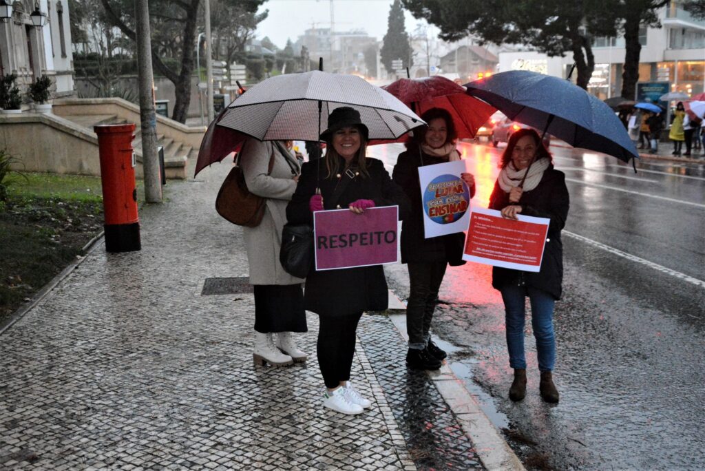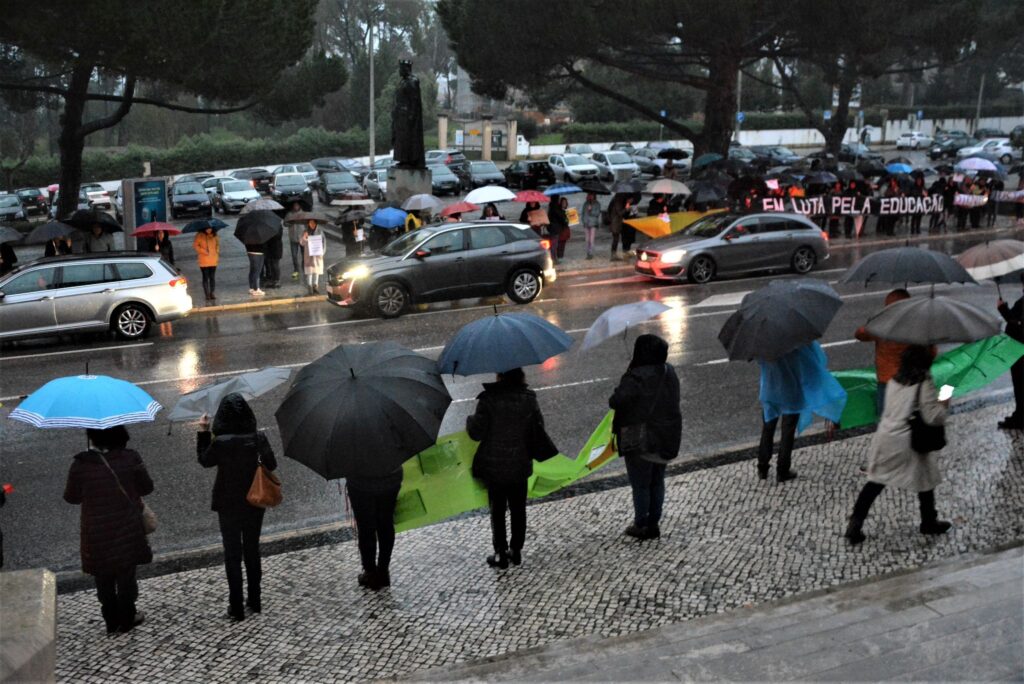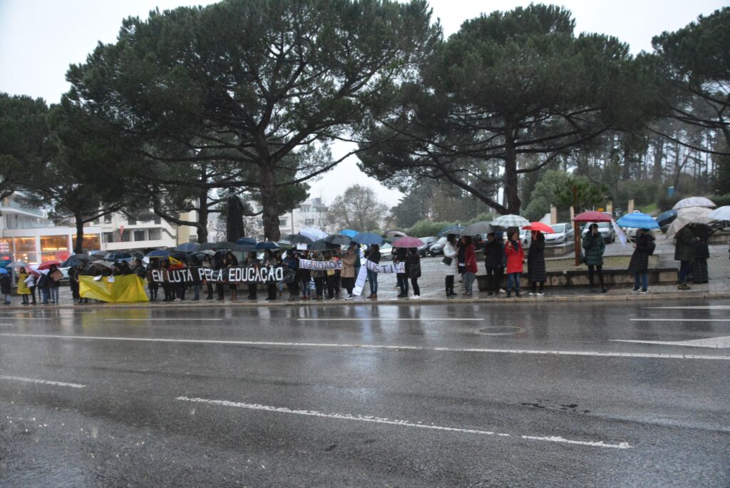 Nem a chuva forte demoveu dezenas de profissionais da educação de se juntarem, em Leiria, à manifestação de protesto marcada para todas as capitais de distrito do continente.