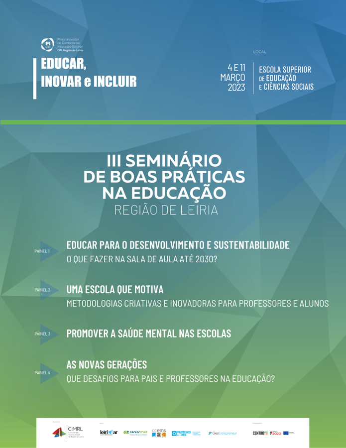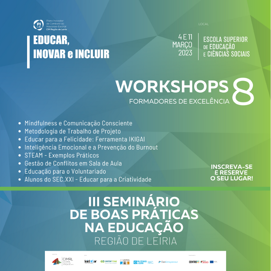 A Comunidade Intermunicipal da Região de Leiria (CIMRL) organiza nos dias 4 e 11 de março o III Seminário de Boas Práticas na Educação, na Escola Superior de Educação e Ciências Sociais (ESECS), no Politécnico de Leiria.