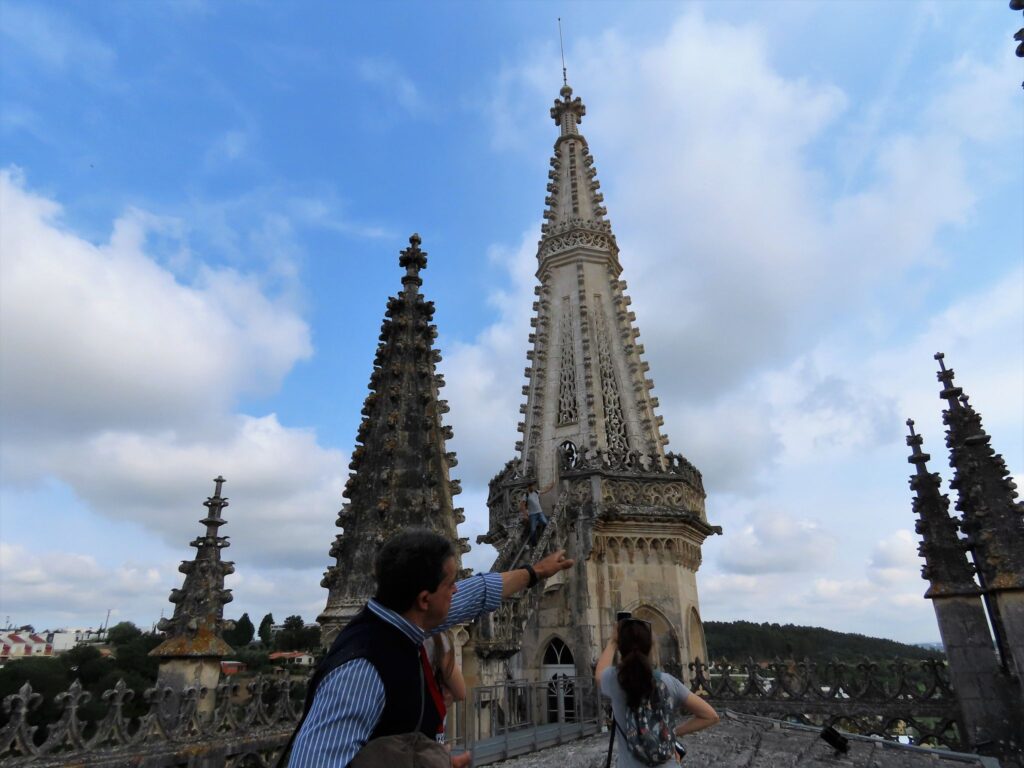 Luís António Ceica guiou o grupo pelas escadas em caracol, pináculos e gárgulas do Mosteiro e foi contando “as belíssimas histórias de quem tão bem conhece os recantos do monumento e as aves que o habitam”.
