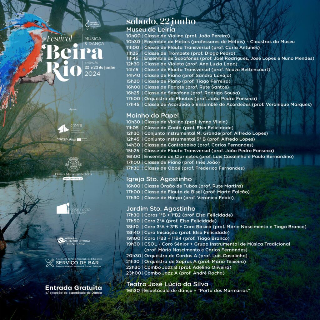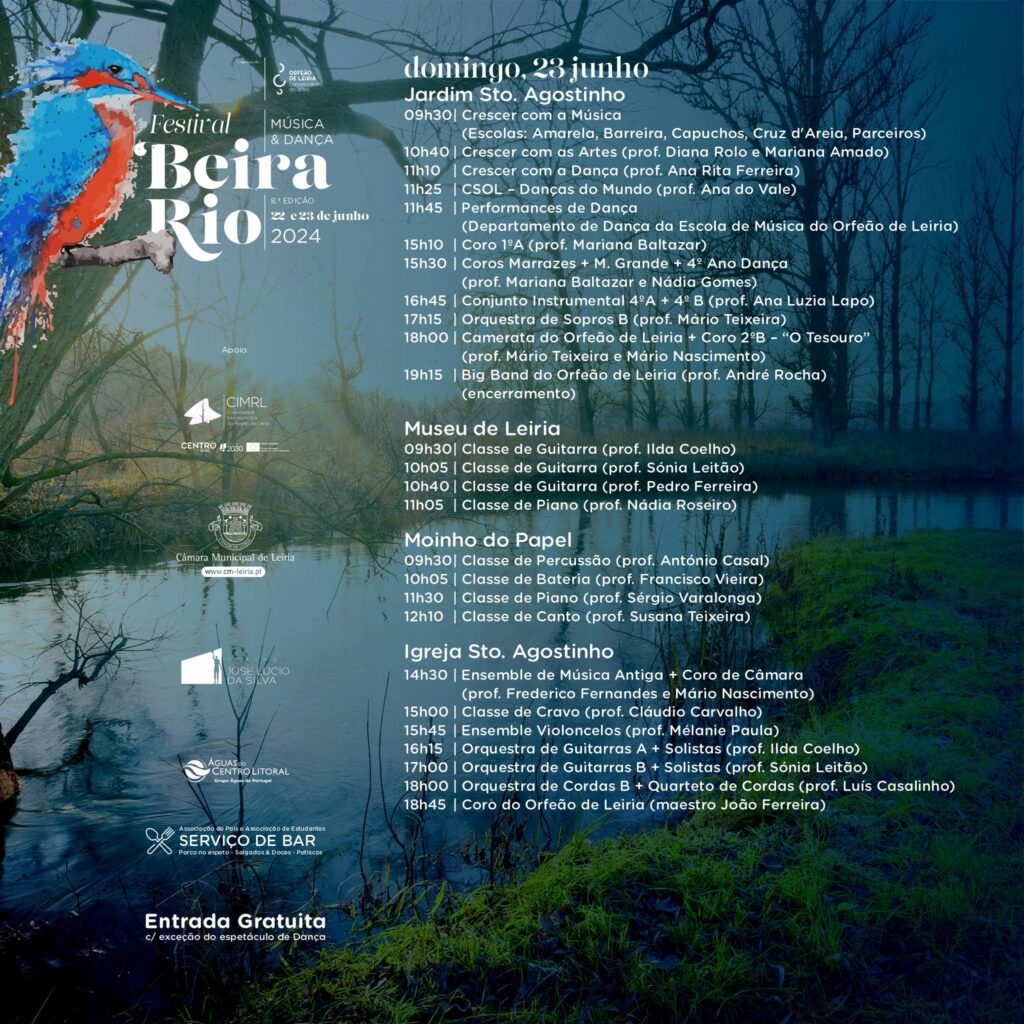 A grande festa da comunidade do Orfeão de Leiria regressa este fim de semana para dois dias com muita música e dança no Festival Beira Rio. Mais de 800 intérpretes, entre alunos e professores de música e outros participantes vão protagonizar mais de seis dezenas de momentos musicais e performances de dança ao ar livre ou em espaços junto ao rio Lis.