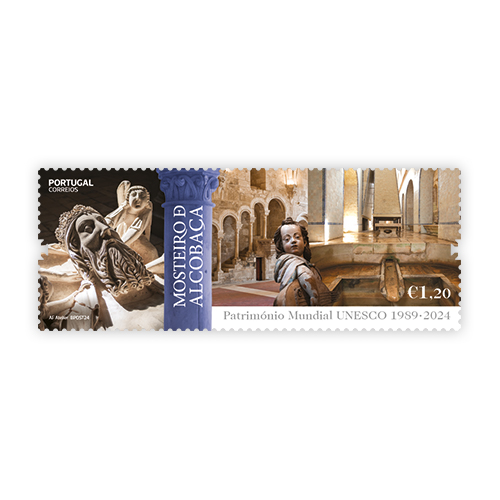 Um dos selos ilustra o túmulo de D. Inês de Castro e o outro o de D. Pedro I (valores faciais de 0,65 a 1,20 euros), havendo ainda um bloco filatélico com um selo, onde está retratada a fachada da Igreja do Mosteiro de Alcobaça (3 euros).