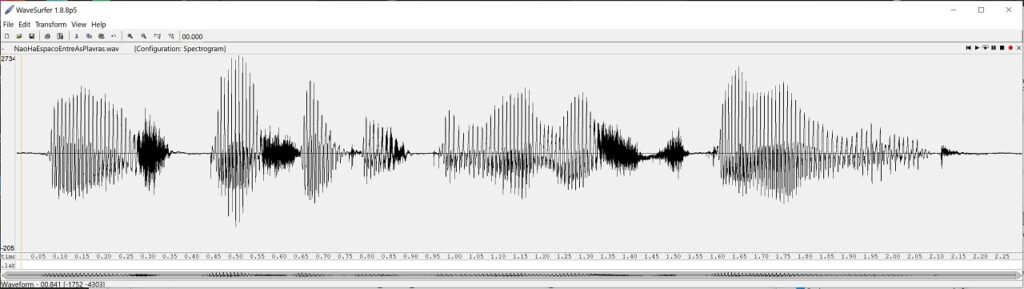 A figura junta mostra uma representação da onda sonora que eu gerei ao dizer a frase “Não há espaço entre as palavras que está a ouvir.”
