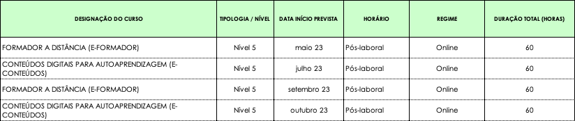 – 50 horas, comprovadas, de experiência formativa enquanto formador (independentemente da área de educação de base).
