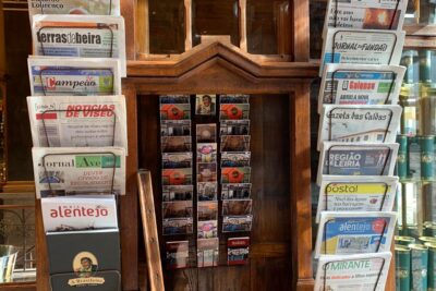 Durante uma passagem pelo café A Brasileira, Presidente da República visitou quiosque de venda de jornais regionais e valorizou a iniciativa.