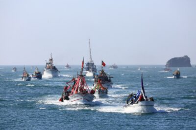 Doze embarcações participam na procissão, que consiste em três voltas à enseada para “bênção da faina, da vida e da atividade piscatória”
