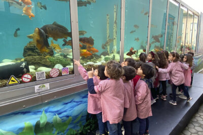 Durante cerca de uma hora, os alunos do pré-escolar ao ensino secundário aprendem sobre vários temas relacionados com os rios.