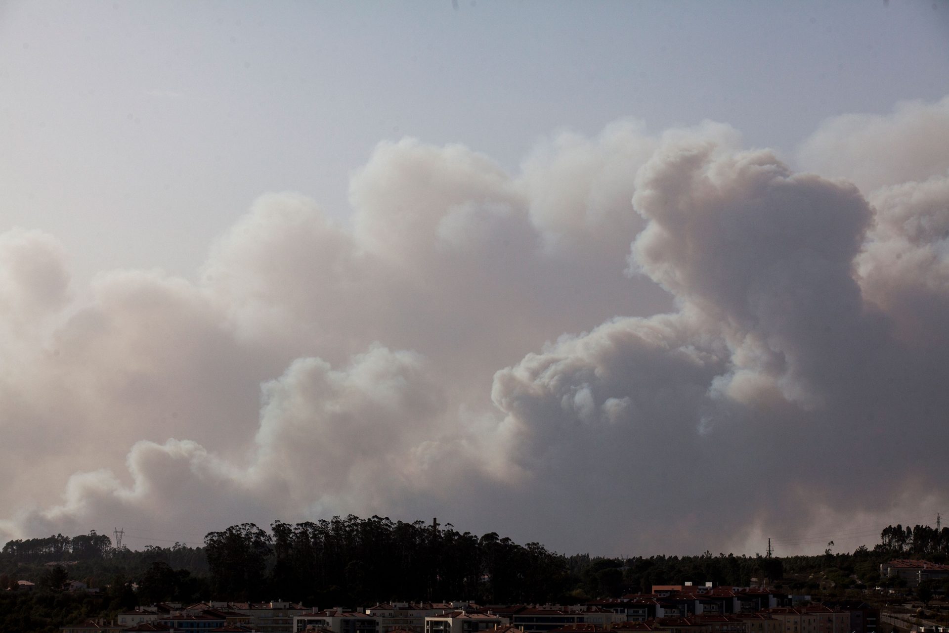 O fumo dos incêndios que deflagraram na zona de Pataias visto de Leiria Foto: Joaquim Dâmaso