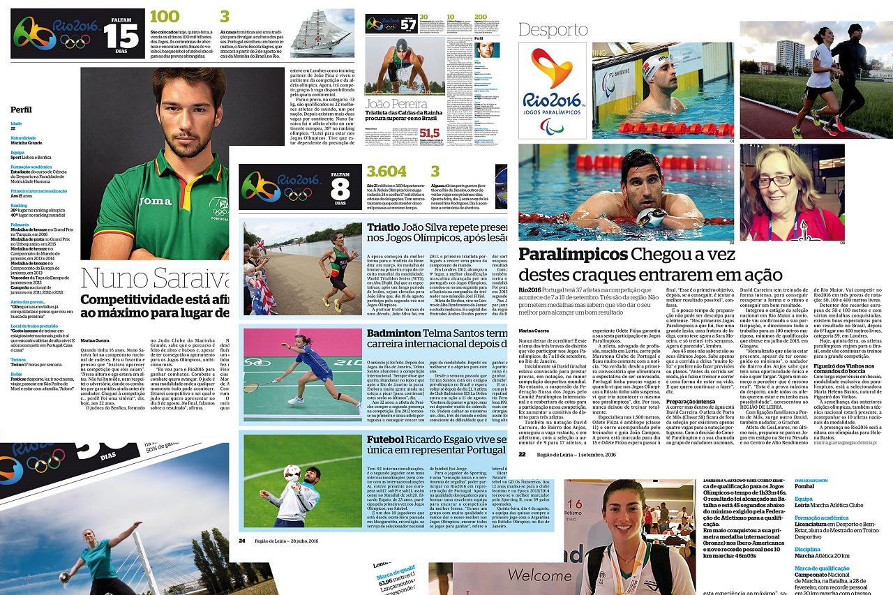 Em 10 edições diferentes, e com um grafismo especialmente desenhado para a temática dos Jogos Olímpicos, Marina Guerra traçou o retrato da participação da região no Rio2016. Por essas páginas passaram os triatletas João Pereira e João Pedro Silva, a lançadora Irina Rodrigues, a marchadora Daniela Cardoso, a atleta Odete Fiúza, o judoca Nuno Saraiva, os nadadores David Carreira, David Grachat e Victoria Kaminskaya, o ciclista David Rosa, o praticante de tiro João Costa, a atleta de badminton Telma Santos, o futebolista Ricardo Esgaio, os técnicos Paulo Reis, Paulo Bernardo, Carlos Carmino, Rui Norte e Maria Helena Bastos.