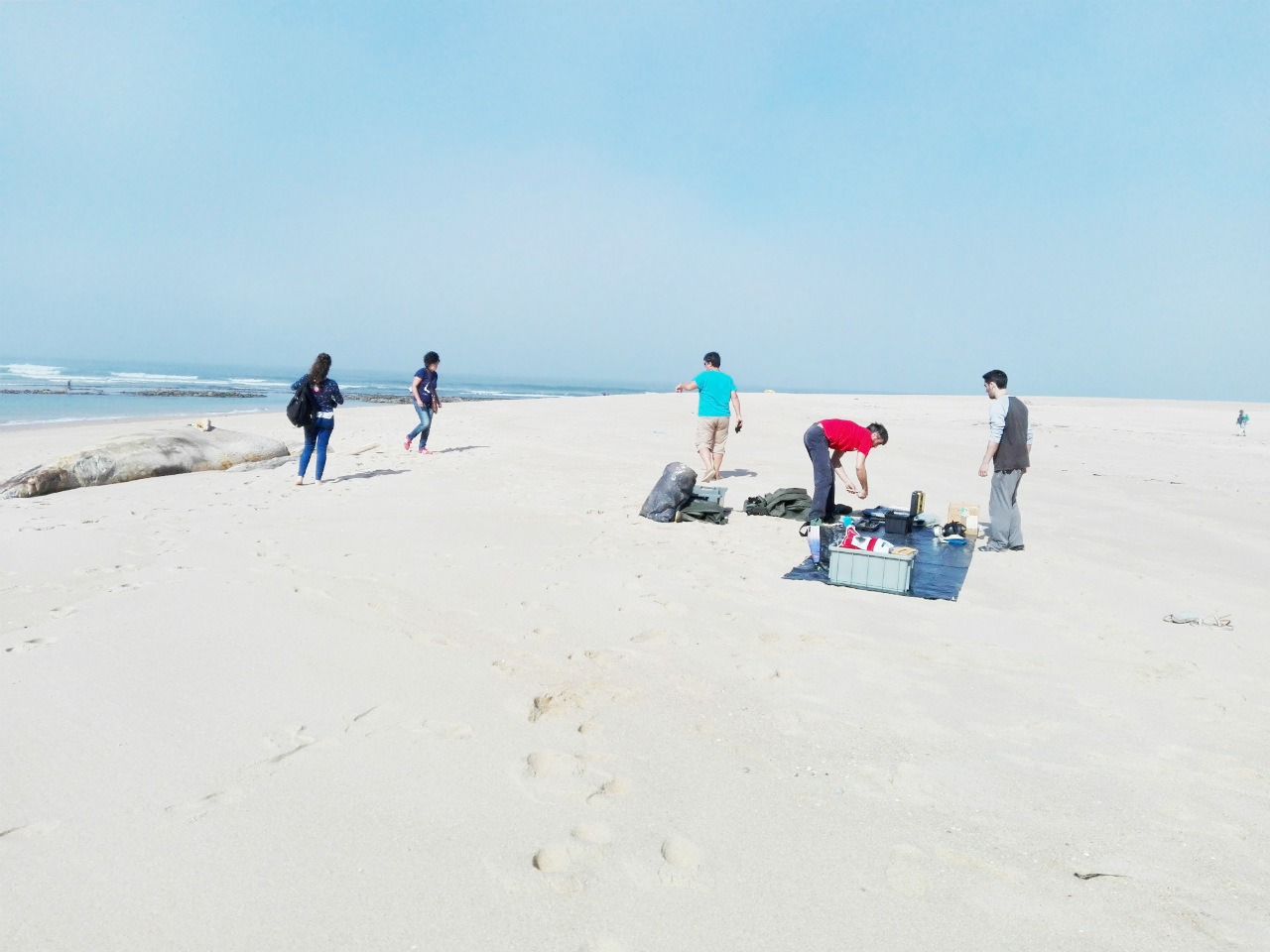 Munidos de serrotes para esquartejar o corpo do animal, cuja “carne e vísceras serão enviadas para incineração”, dois biólogos, um geólogo e um técnico de logística procedem ao desmantelamento da baleia, operação que Judite Alves estima que se prolongue até cerca das 16:00.