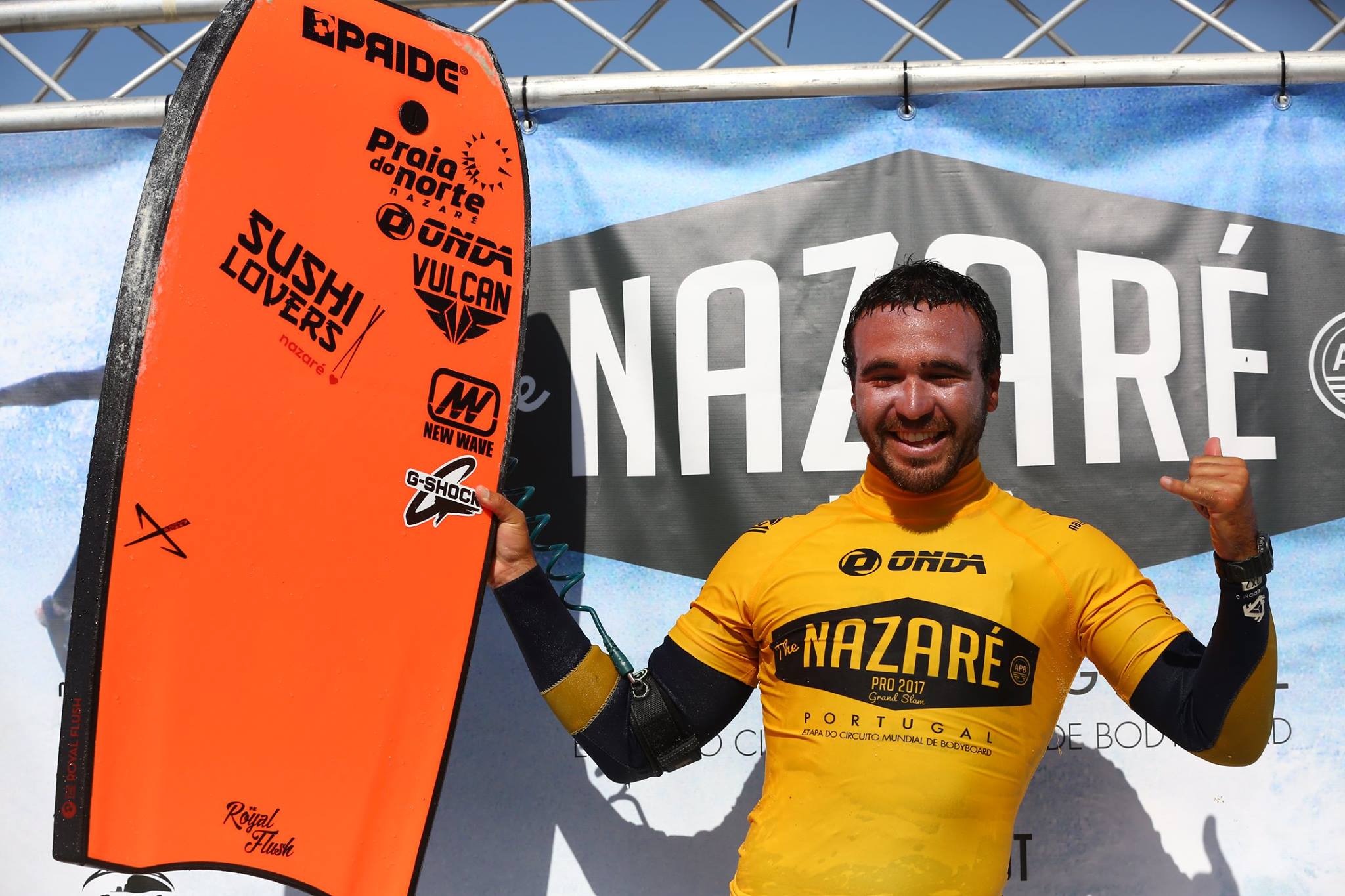 Tó Cardoso venceu hoje o Nazaré Pro, etapa do circuito mundial de bodyboard Foto: Praia do Norte/APB Tour