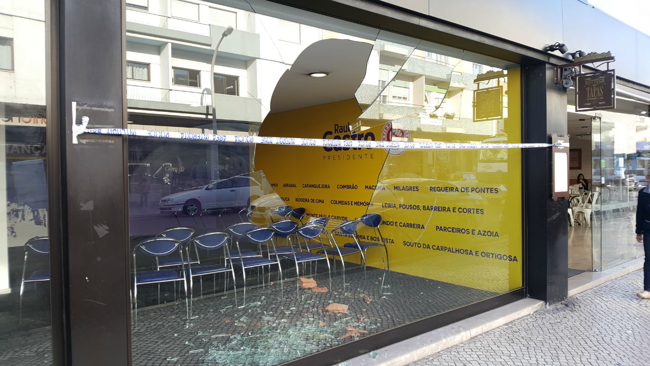 Uma das montras da sede, na avenida Heróis de Angola, no centro da cidade de Leiria, foi destruída, atingida por um tijolo. O mesmo aconteceu com a sede de campanha socialista à União de Freguesias de Leiria, Pousos, Barreira e Cortes, situada na mesma avenida, embora num edifício diferente.