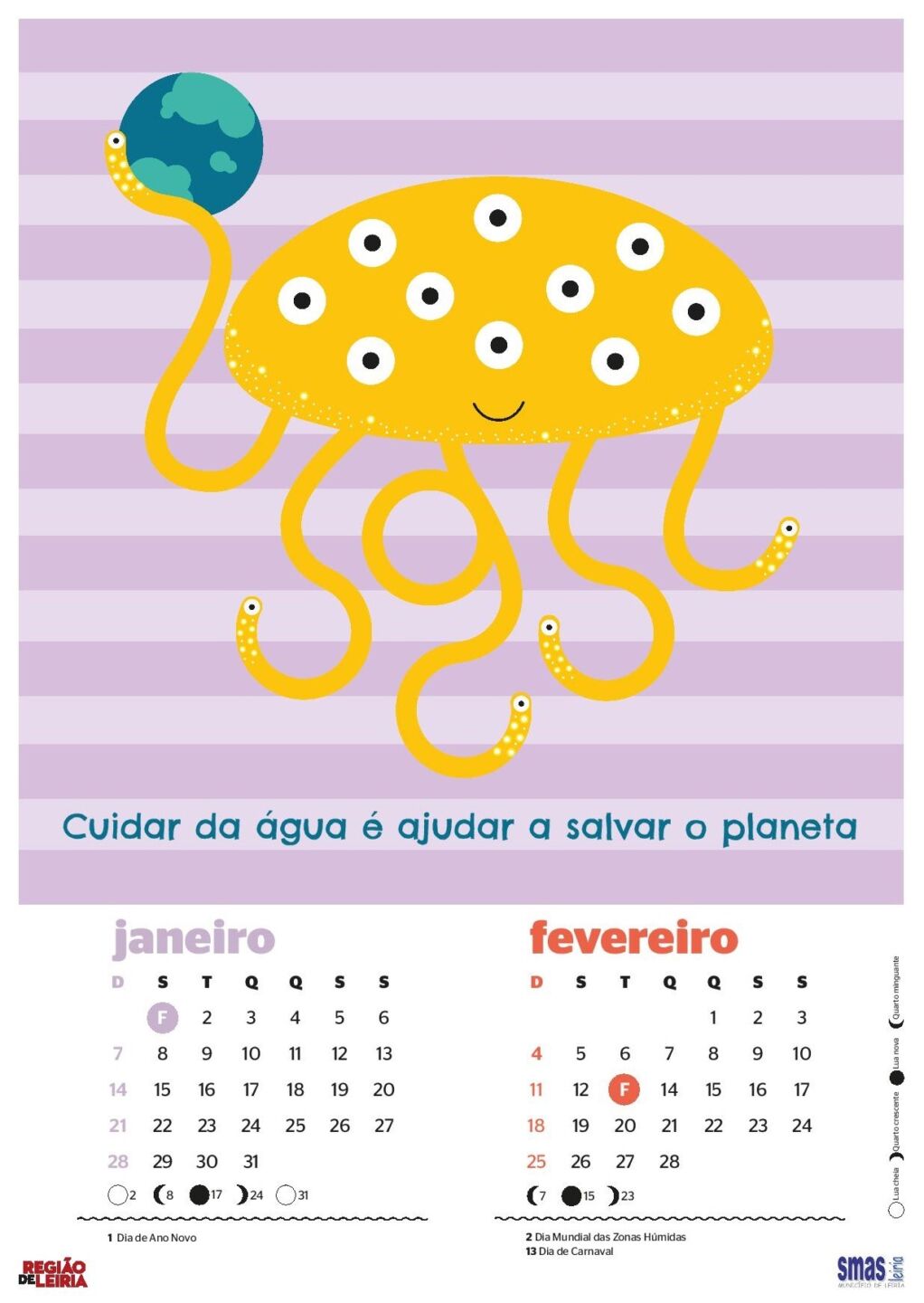 Ilustrado pela designer Rita Pereira, de Porto de Mós, o calendário para 2018 é exclusivamente dedicado à agua e está pensado para ambientes residenciais e profissionais, nomeadamente escolas e espaços públicos.