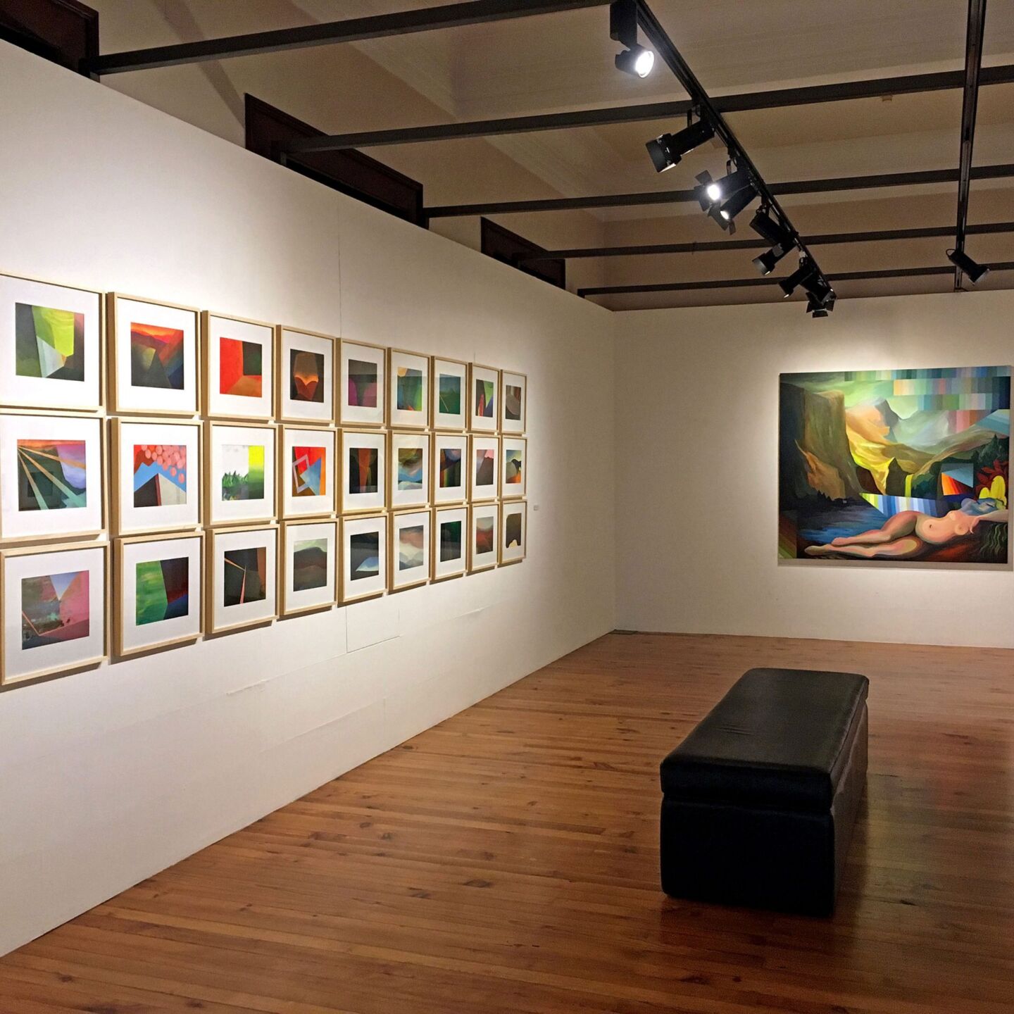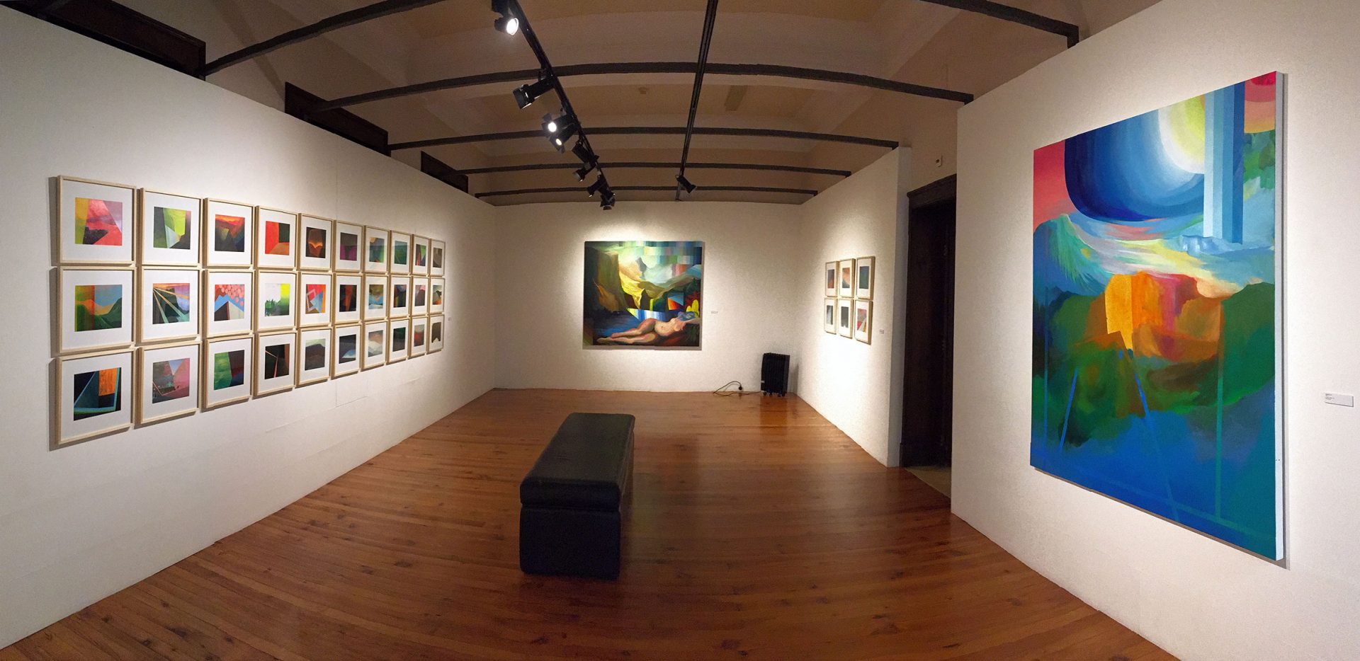 Quase um ano depois, os “Falsos Paraísos” de Nuno Gaivoto estão de regresso a Leiria. Depois da galeria Quattro, e também do Centro Cultural e Congressos (CCC) de Caldas da Rainha, o artista plástico acrescenta um episódio à demanda. “Falsos Paraísos #3” liga pontas entre as pistas deixadas na exposição “Luxumática” e os trabalhos mais recentes: uma combinação de paisagens imaginadas atravessadas por formas geométricas repletas de cor. “As pinturas mais antigas, de 2013, deixavam em aberto alguns caminhos que comecei a seguir nestes últimos trabalhos”, explica.