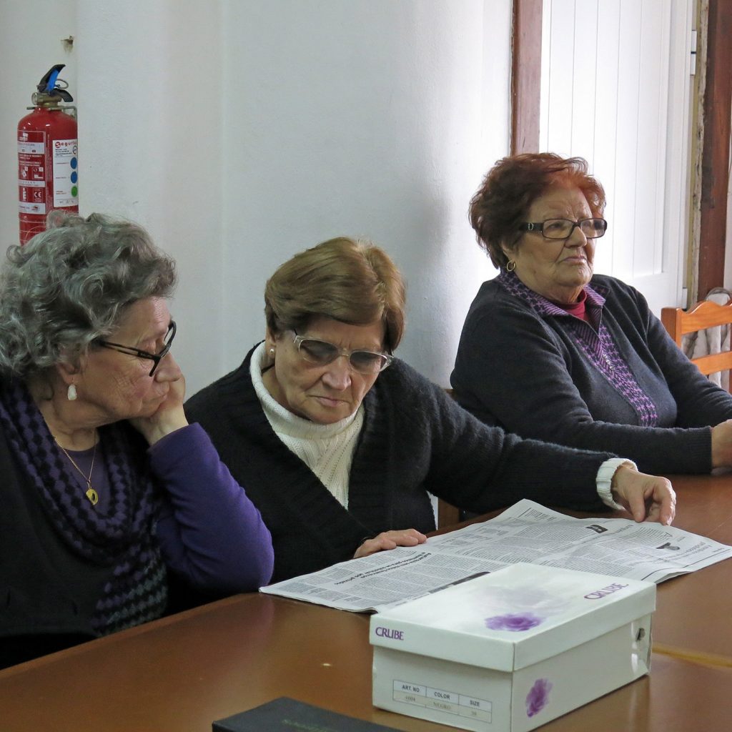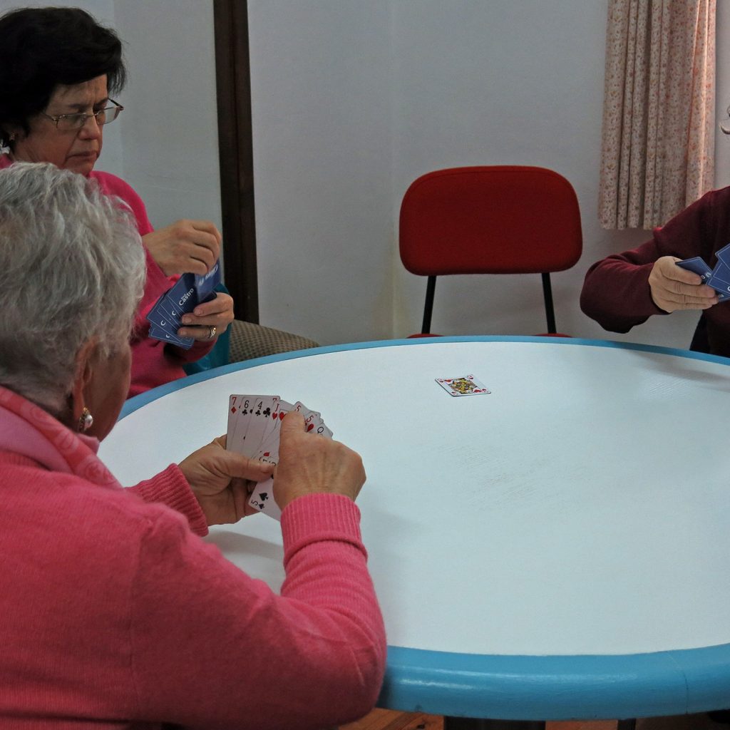Maria José Sousa, 85 anos, é uma dessas utentes. Viúva, reside nos Capuchos e não se desloca ao Centro todos os dias, porque “aparece uma dor, depois aparece outra”. Ali, diz que gosta de jogar bingo e dominó. Em tempos, chegou a bordar e a fazer desenhos, mas agora as amigas “só querem jogar”. Maria José não parece importar-se e, mesmo sem saber ler e escrever, integra os convívios que se fazem em torno de uma mesa de jogo. Para bordar, confessa: “também já não estou a ver bem a coisa”.