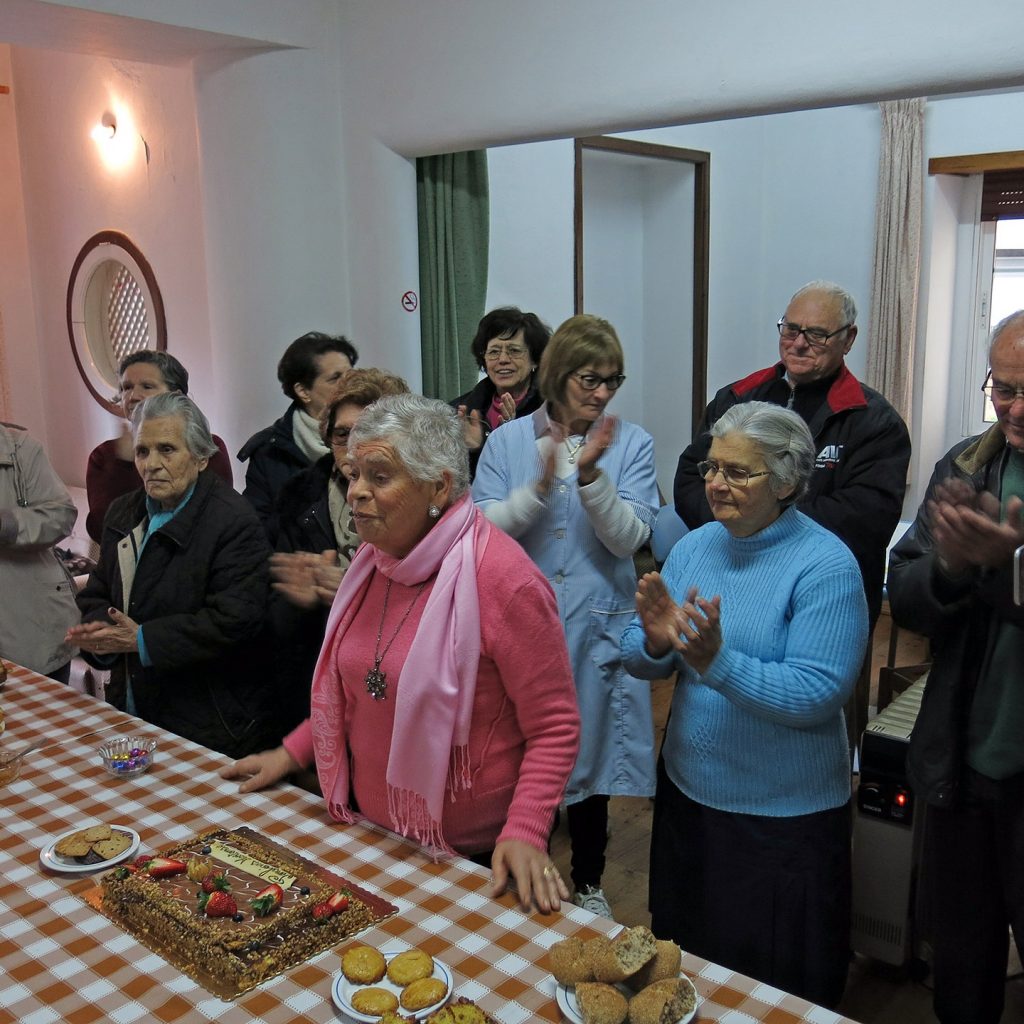 No dia em que celebrou 83 anos, Hortense Pereira não contava com uma festa como aquela. Estava de coração cheio. Além dos utentes habituais, compareceram fundadores do Centro de Convívio, o presidente e restante equipa da União de Freguesias de Leiria, Pousos, Barreira e Cortes e ainda o REGIÃO DE LEIRIA. A casa estava cheia, o ambiente era animado. Não havia dores nem maleitas que afetassem os convivas, todos com mais de 65 anos.