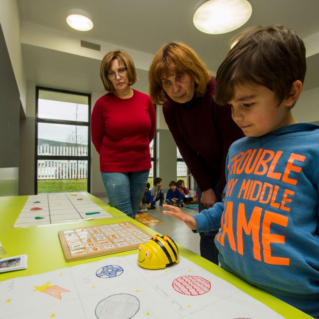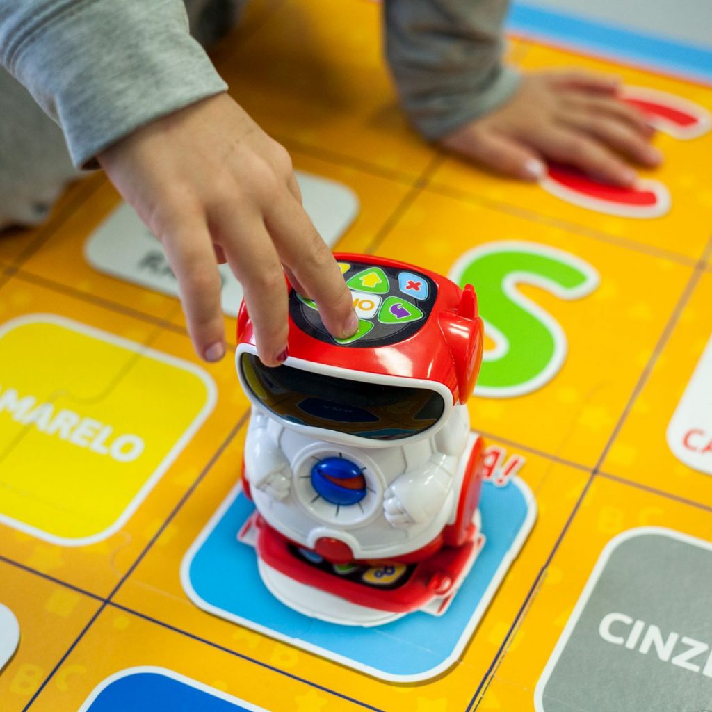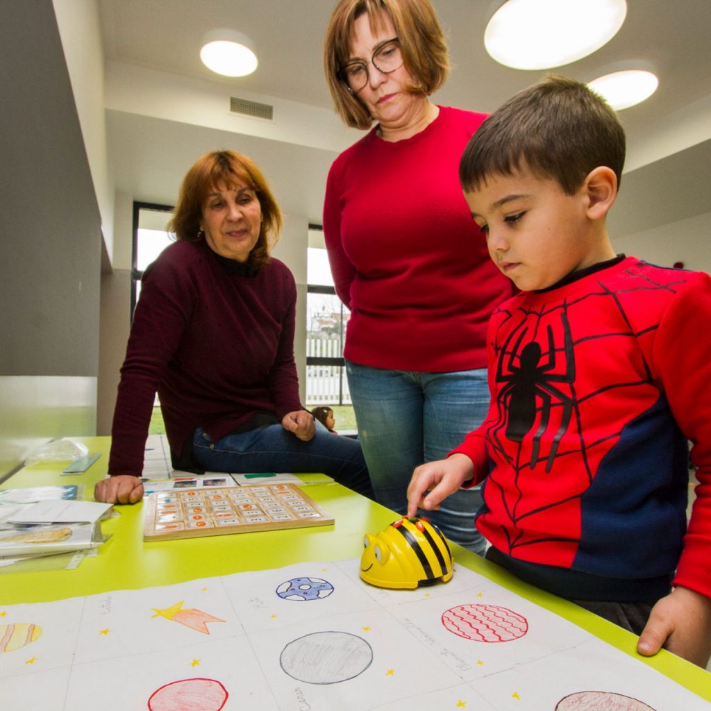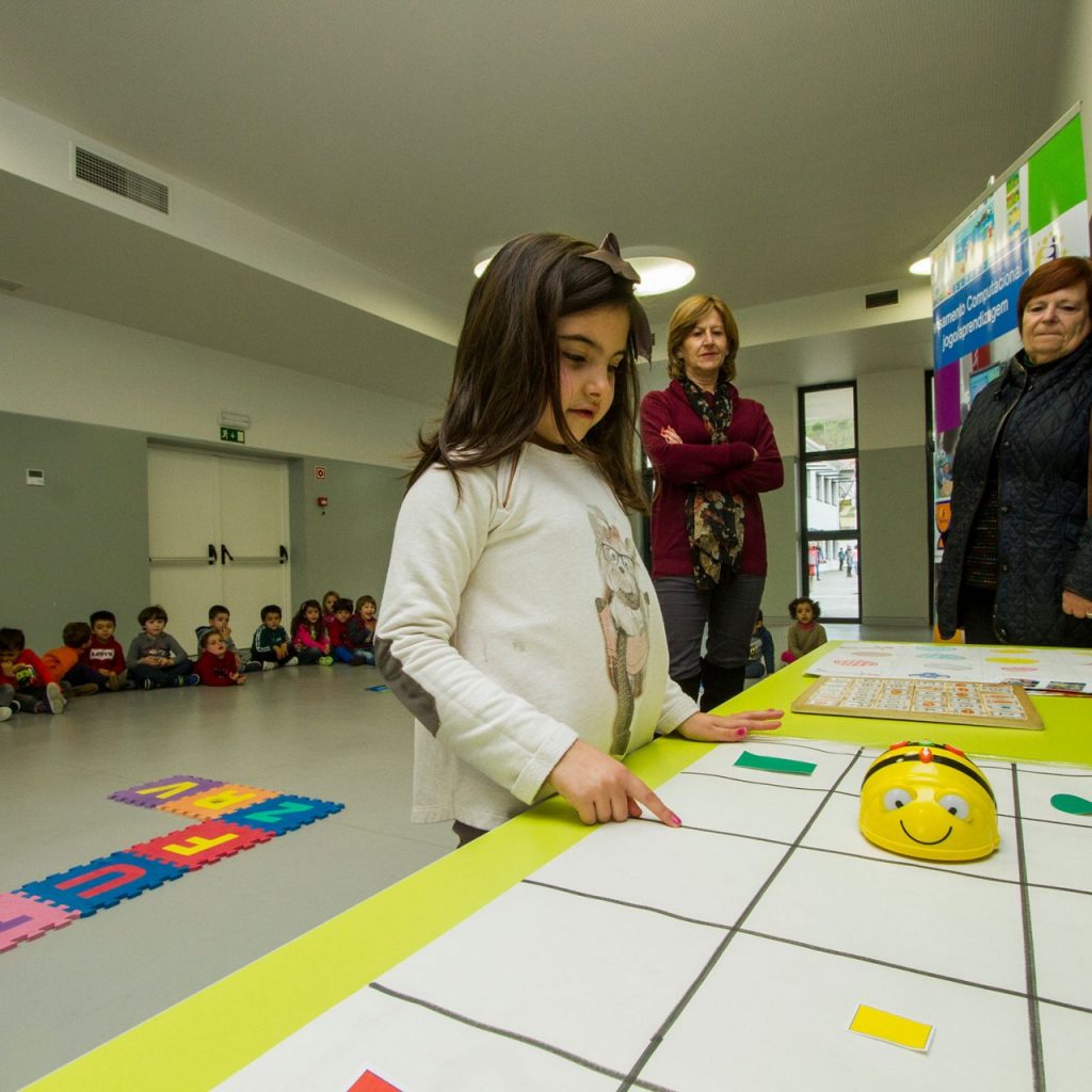 Crianças em idade pré-escolar dão os primeiros passos no pensamento computacional, programando itinerários em pequenos robôs educativos. Estes percursos obrigam-nos a exercitar a capacidade de abstração e à construção de algoritmos. As imagens retratam alguns dos exercícios que estimulam o pensamento lógico. O projeto prepara-se para ser alargado a todo o concelho