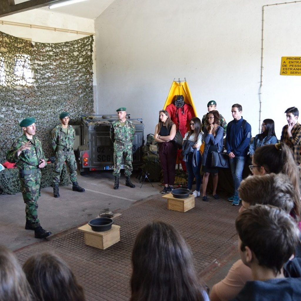 Esta sexta-feira, duas escolas de Leiria, com cerca de 180 alunos, visitaram o quartel. Organizados em grupos, os alunos experimentaram as várias atividades e foram acompanhados por militares que, em simultâneo, descreveram as regras de conduta que caracterizam os exercícios e que permitem a sobrevivência no campo de batalha.