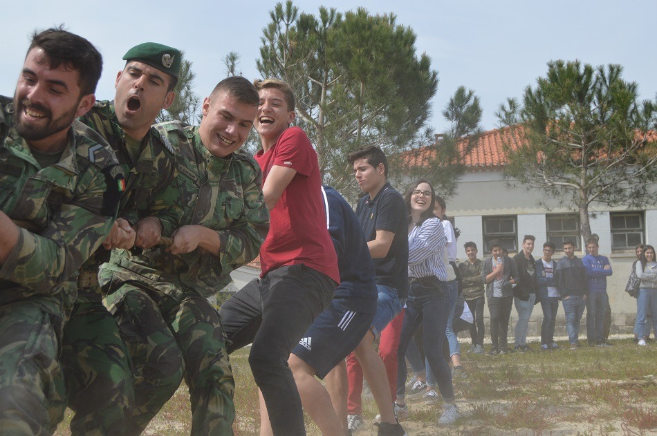 Apesar do sentimento de diversão, Rúben Regadas, aluno da Escola Secundária Henrique Sommer (Maceira), tem noção da mensagem que se pretende transmitir. “Mostra-nos a realidade de que todos os que estão aqui, estão pela nossa pátria e a lutar por nós. E é importante vermos o trabalho que têm investido e termos essa noção”, diz.