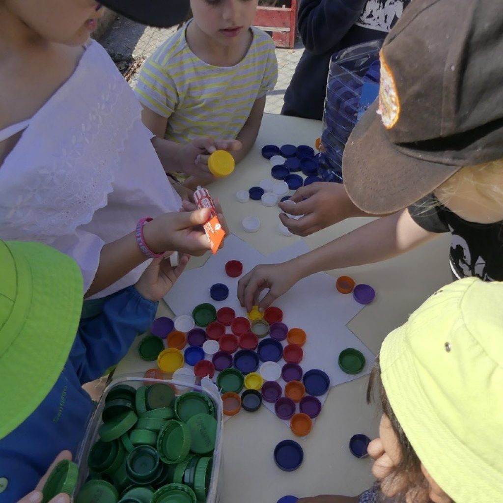 Nas traseiras da escola, cerca de 80 crianças trabalham divididas em grupos. De um lado, calcula-se a área da horta e quantas sementeiras podem ser adicionadas ao lado das curgetes, couves e alfaces que já lá estão. Noutro canto, são distribuídos tubos de cola aos alunos mais velhos do grupo, que ficarão responsáveis por ajudar os mais novos a usar a cola nas tampas de plástico que vão utilizar para decorar uma estrela. “Eu é que sou mais velho”, exclama prontamente um menino, gerando um burburinho para aferir quem fica com a tarefa.