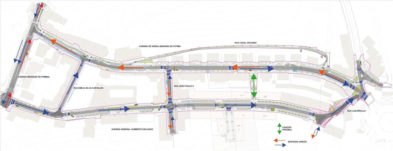 A proposta contempla ainda o aumento dos lugares de estacionamento de 72 para 198 dos lugares na avenida General Humberto Delgado e nas ruas João Paulo II e Emília Silva Carvalho, e a reorganização dos lugares (145) na avenida Nª Sª de Fátima e rua Luís Braille.