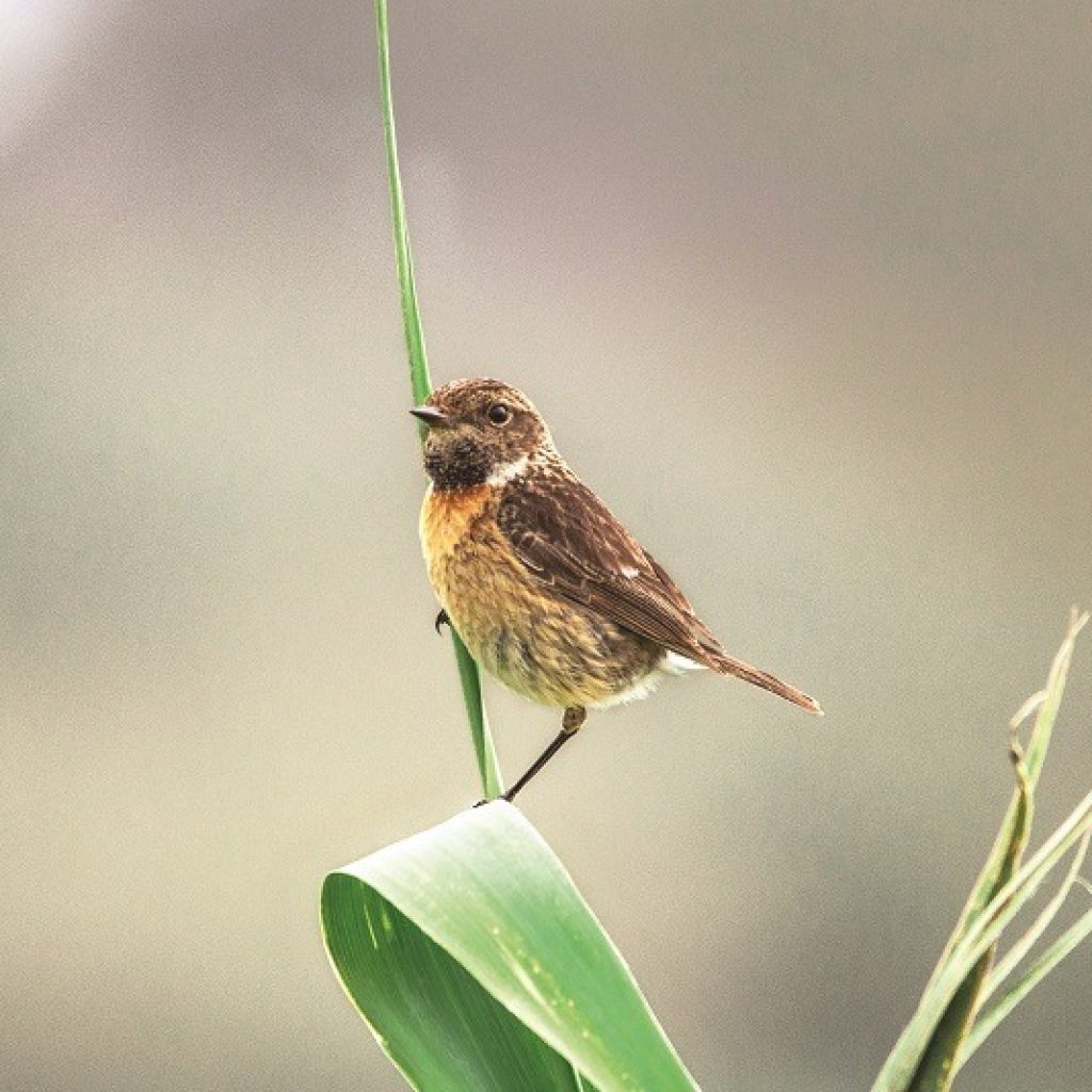 Cartaxo comum (Saxicola rubicola). O peito laranja e a cabeça preta funcionam como um semáforo, quando a ave se empoleira nos postes e cercas das zonas abertas. Esta ave é uma das mais fáceis de observar, devido à sua conspicuidade.