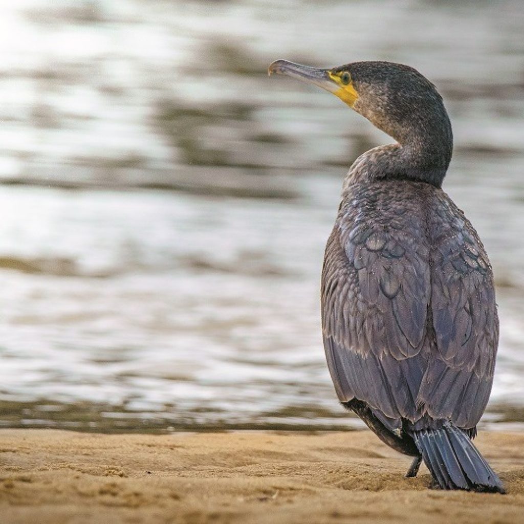 Corvo marinho de faces brancas (Phalacrocorax carbo) Tem um pescoço longo e asas igualmente longas. O bico amarelo contrasta com o preto da plumagem e, no final do inverno, alguns indivíduos adquirem uma mancha branca em cada flanco e outra na cabeça. É um nadador exímio, que mergulha para apanhar peixe.