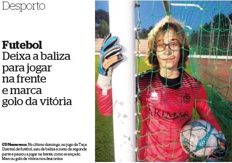 Marina Guerra, jornalista do REGIÃO DE LEIRIA, venceu a edição deste ano do Prémio Desporto com Ética para Imprensa Regional, com a reportagem “Deixa a baliza para jogar na frente e marca golo da vitória”, publicada a 1 de fevereiro de 2018.