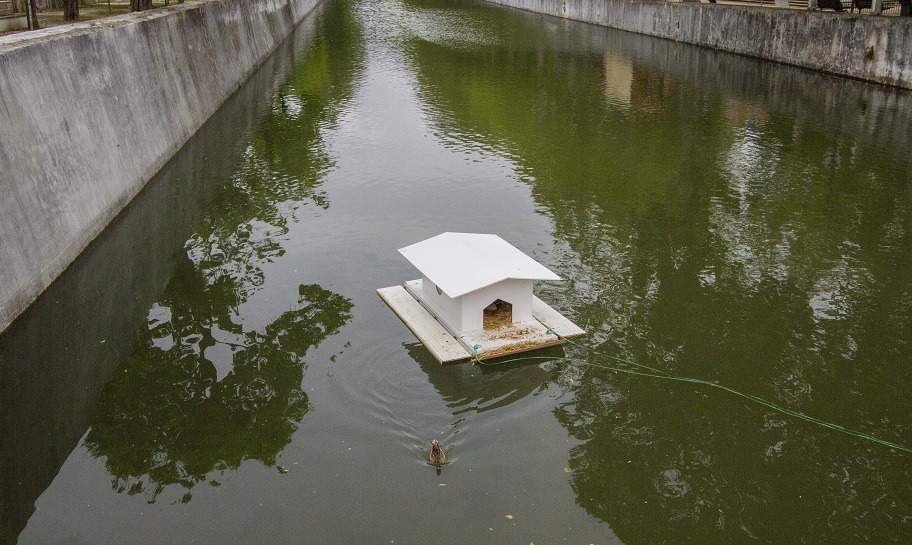 Foi a pensar nestes animais que, no passado dia 22 de maio, feriado municipal de Leiria, deixou uma casa de madeira junto à ponte do Bairro dos Anjos, a boiar no rio, para que os patos e as crias ali se possam abrigar e alimentar.