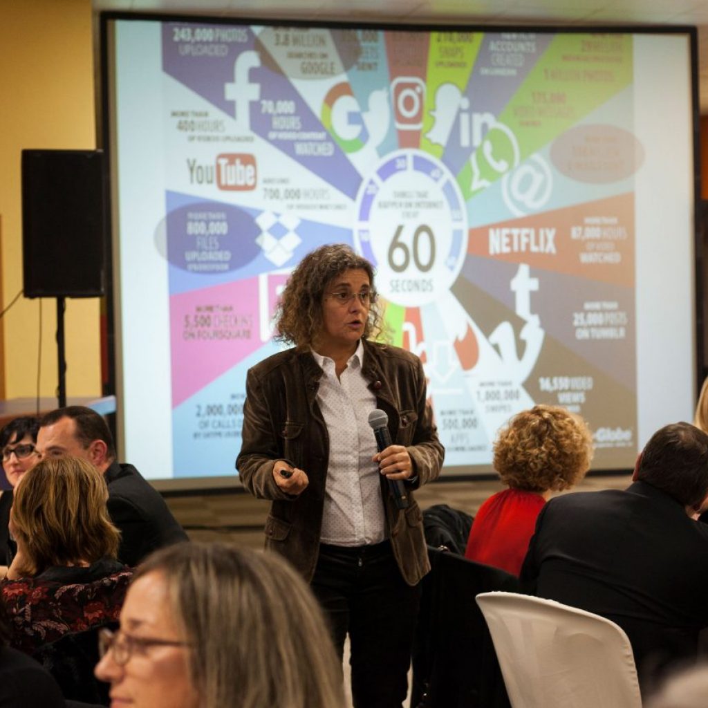 Tânia Dimas, team leader na Outsystems, no departamento de Customer Success. People-centric, realizou um exercício com os convidados do evento, levando-os a assumir decisões no imediato e a pensar, justificando que a sua paixão é perceber como é que as pessoas e as tecnologias se ajudam mutuamente em ambientes empresariais em constante mudança.