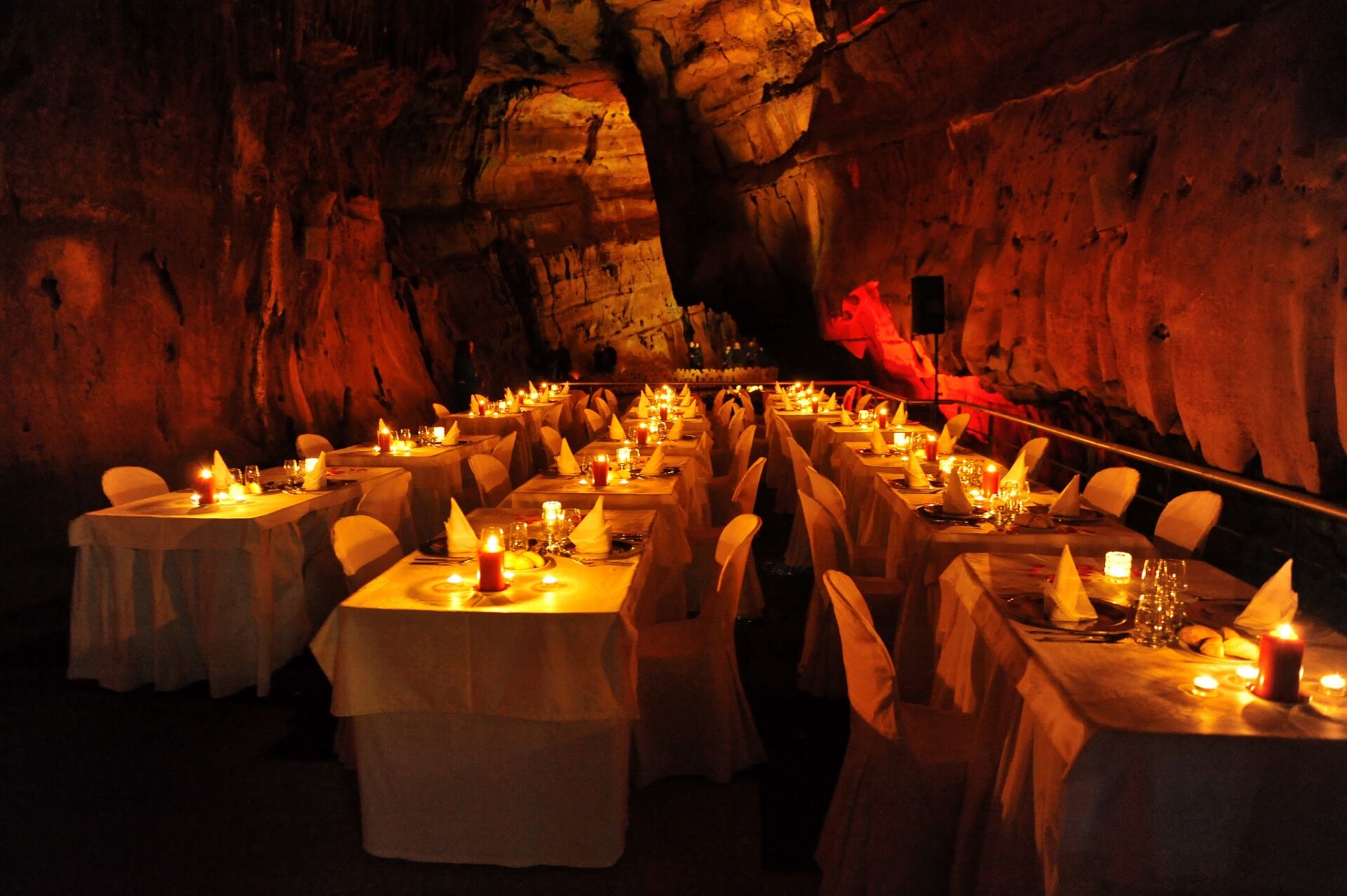 Será pelo segundo ano consecutivo e promete igualmente uma experiência de tirar o fôlego. No interior de uma das setes maravilhas naturais de Portugal, mesas, velas e um jantar a quatro tempos unem-se para criar uma noite tão inusitada quanto memorável aos comensais (190€ por casal). O catering é do restaurante Grutas e inicia com um cocktail de camarão gratinado. Para completar a experiência, os interessados podem optar por hospedagem num dos bungalows localizados no parque da gruta (160€), que ganham toque romântico na receção e tem pequeno almoço incluído.