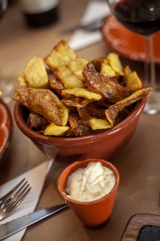 A começar, na Taverna Xico e Xica não há prato únicos nem ementa tradicional. Os pequenos quadros pendurados na sala dão um aperitivo do que a pequena e sintonizada cozinha é capaz de produzir. Pequena porque são apenas dois colaboradores a executar as ideias de sabores trazidas das andanças dos irmãos, responsáveis por transformar por completo o lugar que por anos foi um café. Entre as adaptações está o balcão, decorado com cerca das 15 garrafas de vinhos escolhidas para serem servidas. Uma seleção vinda de quintas mais pequenas para abastecer a parte de bebidas e fazer companhia às cervejas artesanais e aos clássicos imperial e sangria.