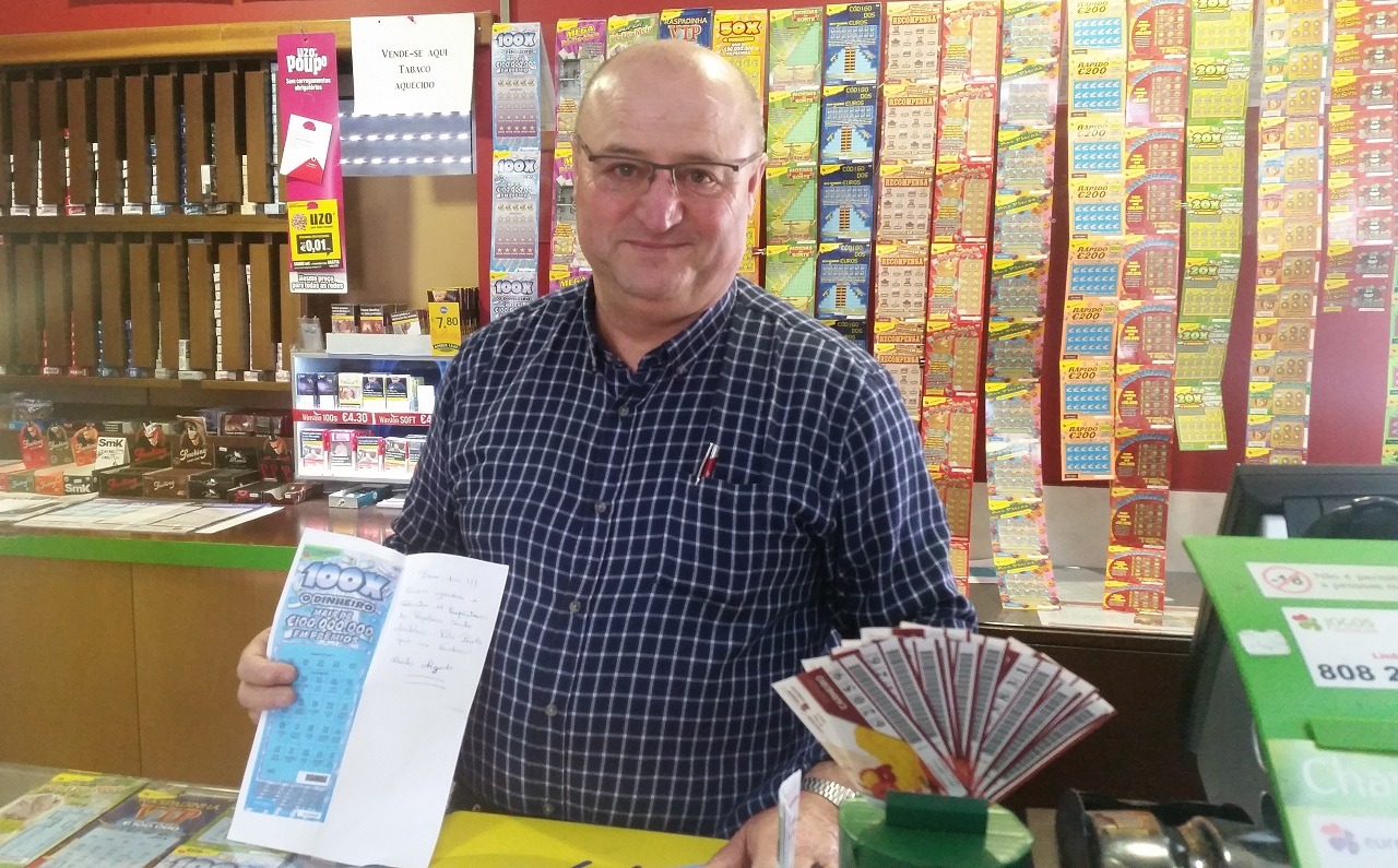 Foi através de uma mensagem de agradecimento acompanhada da fotocópia da raspadinha vencedora, deixada na caixa de correio, que Armando Reis soube na terça-feira que um dos maiores prémios da série “100X o dinheiro” saíra da sua papelaria.