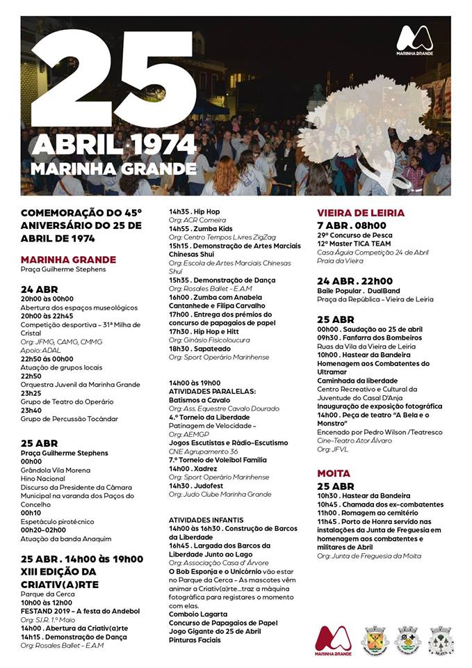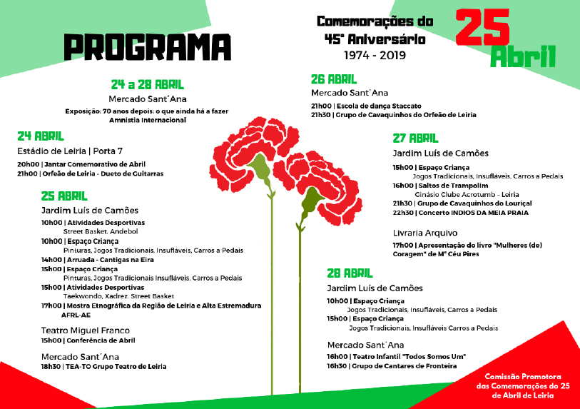 Consulte aqui os programas comemorativos do 25 de Abril de 1974 na região de Leiria.