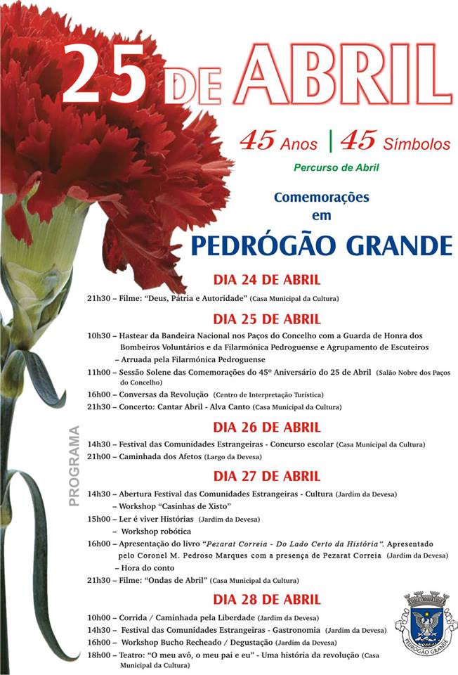 Há várias iniciativas a decorrer esta semana para assinalar os 45 anos do 25 de Abril. Consulte aqui as atividades disponíveis em vários concelhos da região de Leiria.