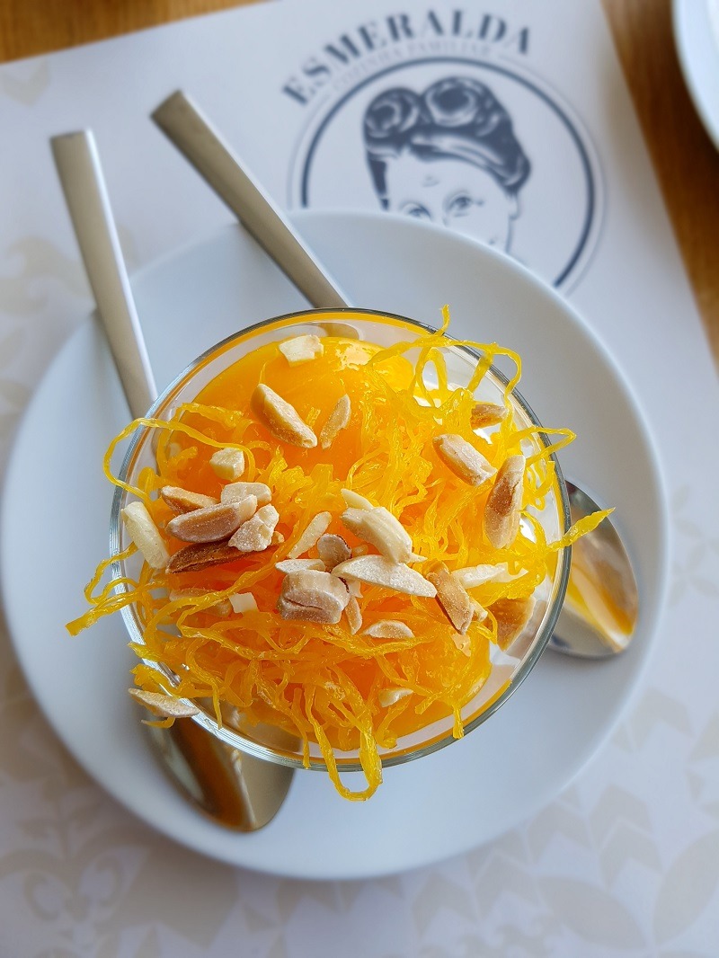 O restaurante nasceu em junho de 2018, com o slogan de cozinha familiar, mas a experiência e alguns percalços encarregaram-se de lapidar o conceito, servido atualmente com a assinatura principal do chef Samuel Catarino. Por ele, e com apoio do sous-chef Bruno Vicente, releituras de pratos tradicionais ganham novas técnicas para apresentar nomes que vão além das mariscadas e cataplanas, o menu mais comum na Nazaré. Esses ficam lá para baixo. Do alto, Esmeralda quer surpreender.