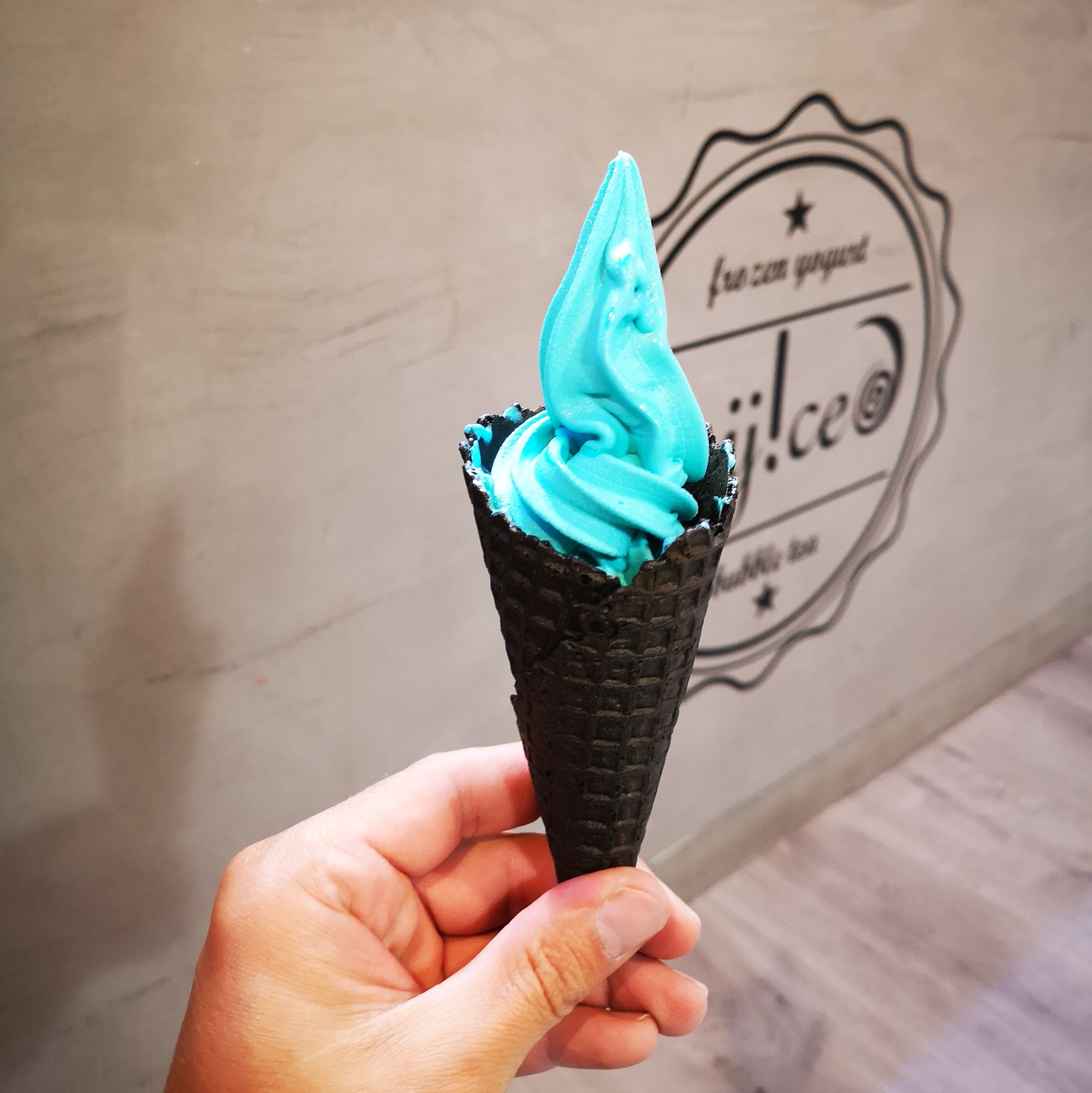 Já na MyIced, que tem lojas em Leiria e nas Caldas da Rainha, a sugestão veio em forma de cone, com bolacha preta de carvão ativado, que pode receber qualquer um dos sabores da marca. A recomendação, todavia, é para o de iogurte em cor azul (08), obtida por meio da espirulina, alga rica em proteína.
