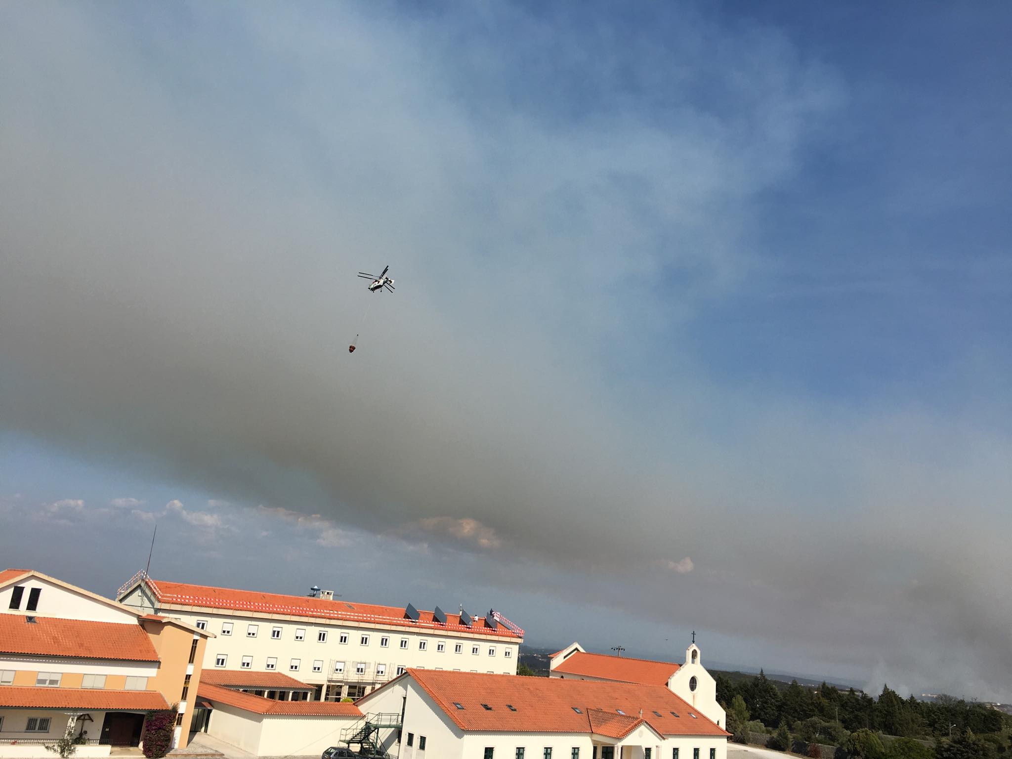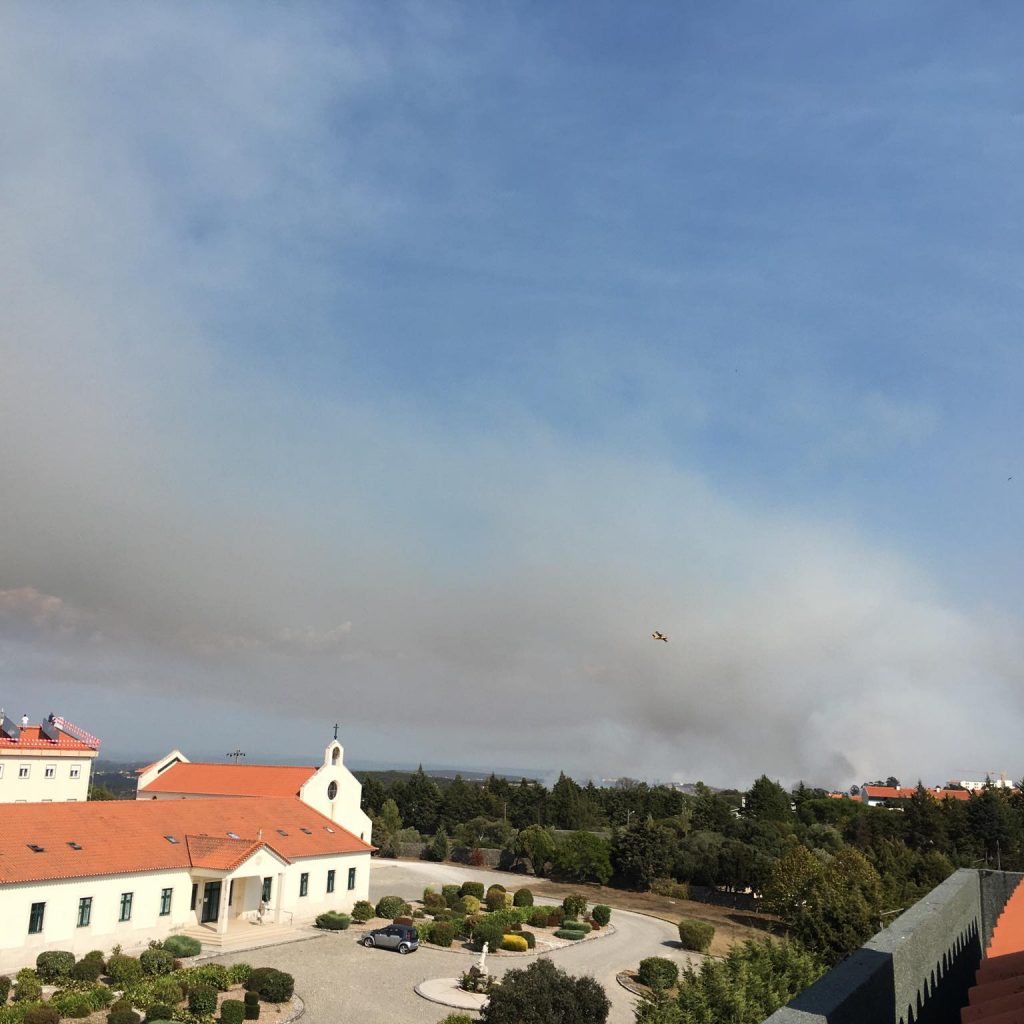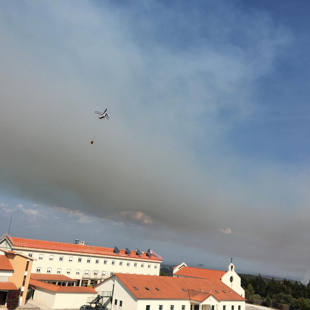 Um vídeo captado há instantes em Fátima, revela a intervenção dos meios aéreos, sendo evidente o impacto da coluna de fumo que se eleva sobre a cidade.